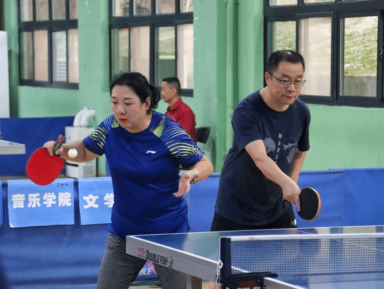 与音乐学院的比拼中,先是由刘彬和饶琪默契配合,取得首局胜利;第二局,罗耀华出战男单,经过一番紧张的拉锯战后获胜;第三局女单,徐香莲对阵音乐学院徐晴,进一步把比赛推向高潮;第四局,韩维志联手高景以过硬实力拿下混双胜利;最后李程和王海龙面对劲敌,顶住压力,以2:1的成绩结束比赛。最终,文学院以10:5的总成绩战胜音乐学院,再次晋级。