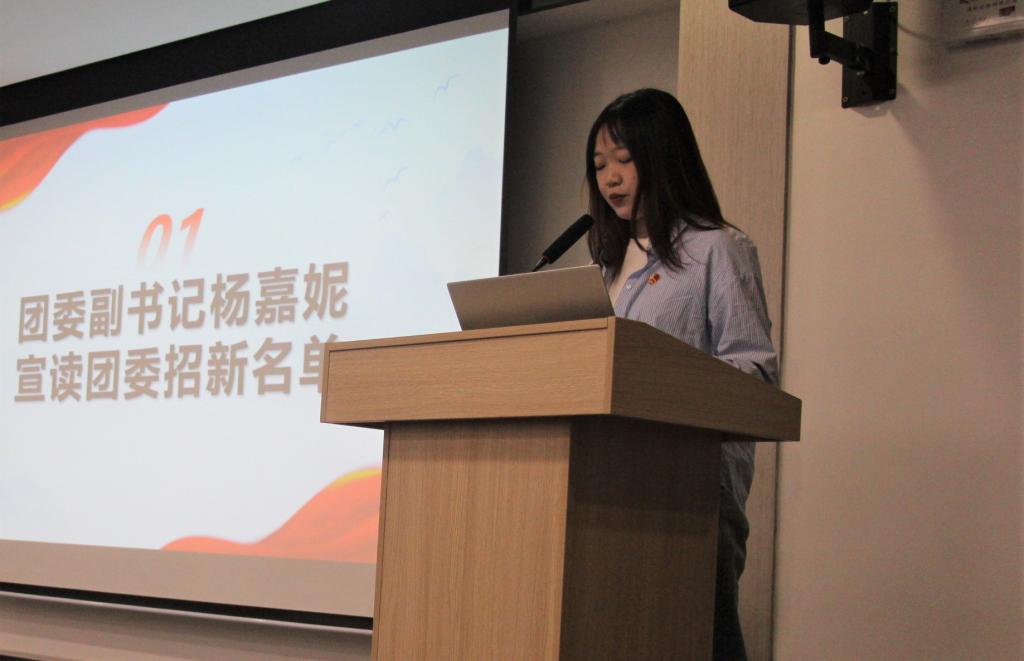 会议伊始,由马文宇代表团委学生会向团委、学生会新部委的到来表示欢迎和祝贺,她表示“你们的加入为团学注入新鲜血液,你们的选择也是对团学的肯定,是让我们更好地回顾过去、展望未来、凝聚团学组织的力量。”随后,杨嘉妮和钟旭东分别宣读了团委招新名单和学生会招新名单。