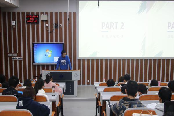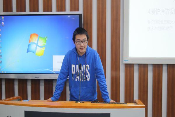 接着,蒋凯文就校园安全防患——校园消防安全、校园治安防范、校园用电安全、校园诈骗防范四个方面一一说明。他提醒学生:“作为计算机学院的学生,我们更要注意消防安全,在使用电器后一定要记得关电源拔插头。”之后,他为大家普及了校园消防安全相关知识——常见状况及解决方法和预防火灾常识,以及校园安全用电须知。在校园治安防范方面,他从“如何做好宿舍防盗”和“被盗后应该怎么做”两个方面详细阐明。他告诉学生要特别注意关好门窗,不能带外来人员留宿,更不可以将钥匙外借。之后,蒋凯文用一句“最经典的诈骗是什么”引发了大家的思考。就防范兼职、网银诈骗,他向大家介绍了一些具体的防范措施。薛凯文特别提醒同学们千万不能贪图小便宜,在防范电信诈骗方面要多下功夫。