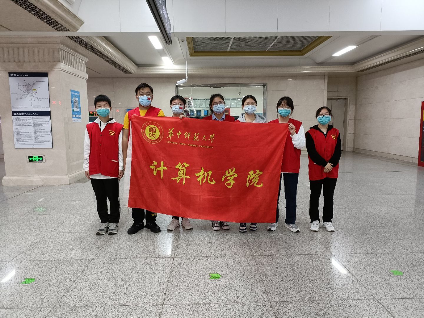 华大青年讯(通讯员 彭若菲 熊锦玟)暮春时节,计算机学院实践与志愿服务部于4月9日开展了解封后的第一次梨园地铁站志愿服务活动。本次活动旨在发扬“奉献、友爱、互助、进步”的志愿精神,维护地铁站秩序。