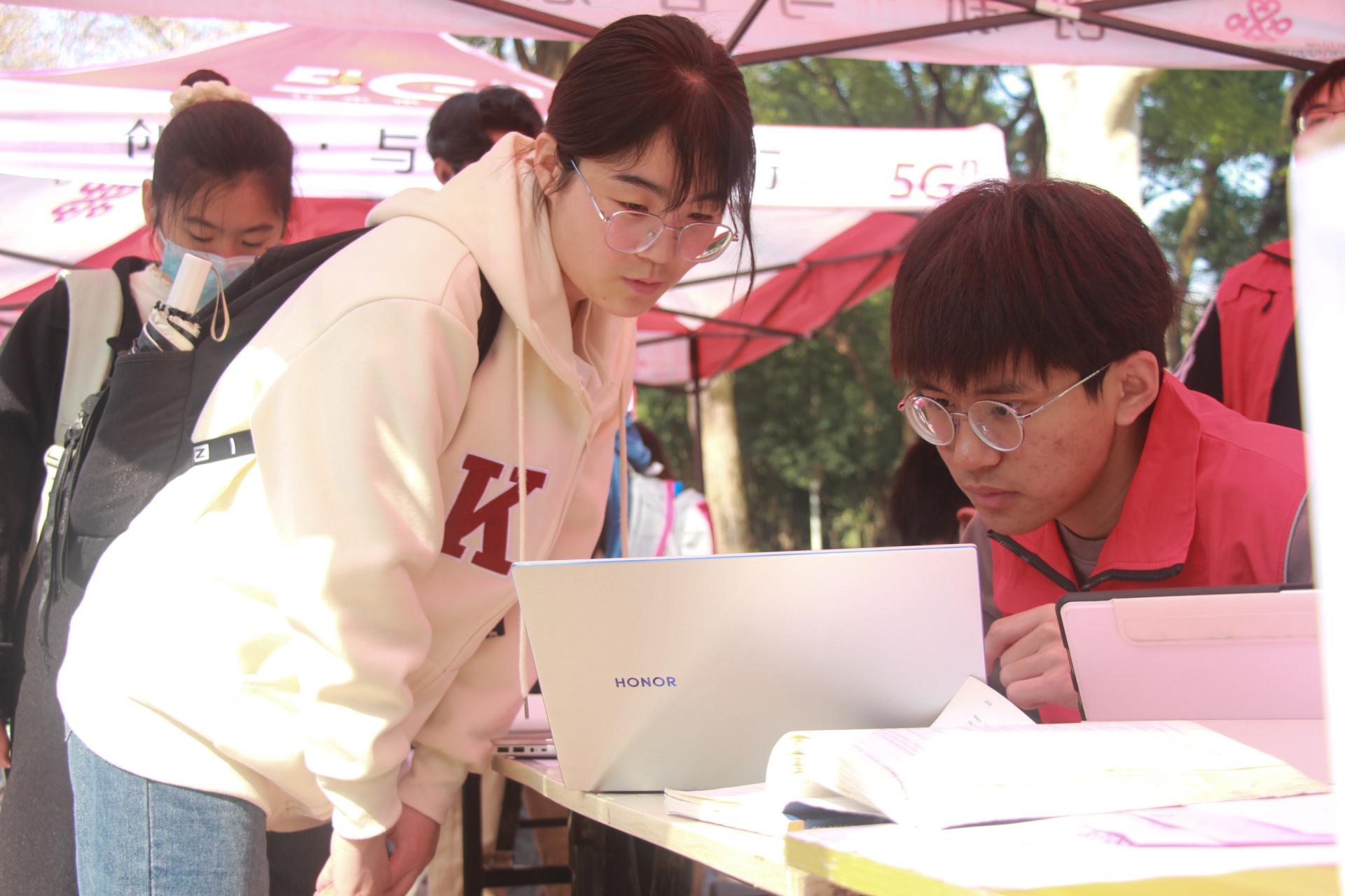华大青年讯(通讯员 肖子傑 刘紫燕 景浩洋 陈嘉嘉) 为积极响应学校三月“学雷锋”活动的号召,更好传承和弘扬雷锋精神,发扬志愿服务精神,3月5日,计算机学院奔腾服务队在本部校区和南湖校区开展义诊活动,为广大师生解决电脑问题。