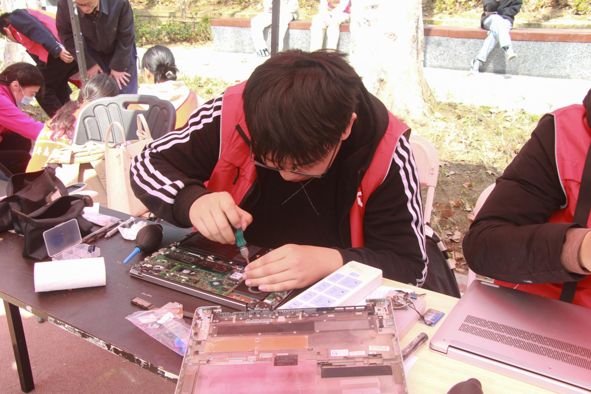 活动现场,有许多学生带着电脑来咨询。服务队员们耐心为他们提供专业指导,解疑答惑。面对各种各样的电脑软件难题,队员们耐心地帮助求助者门一步步解决;而在另一边,也有队员在低头专注于电脑清灰与硬件维修工作。活动摊位也提供了暂时存放维修服务,机主可以将电脑存放在摊位处,待问题处理完毕后再前来领取自己的电脑。