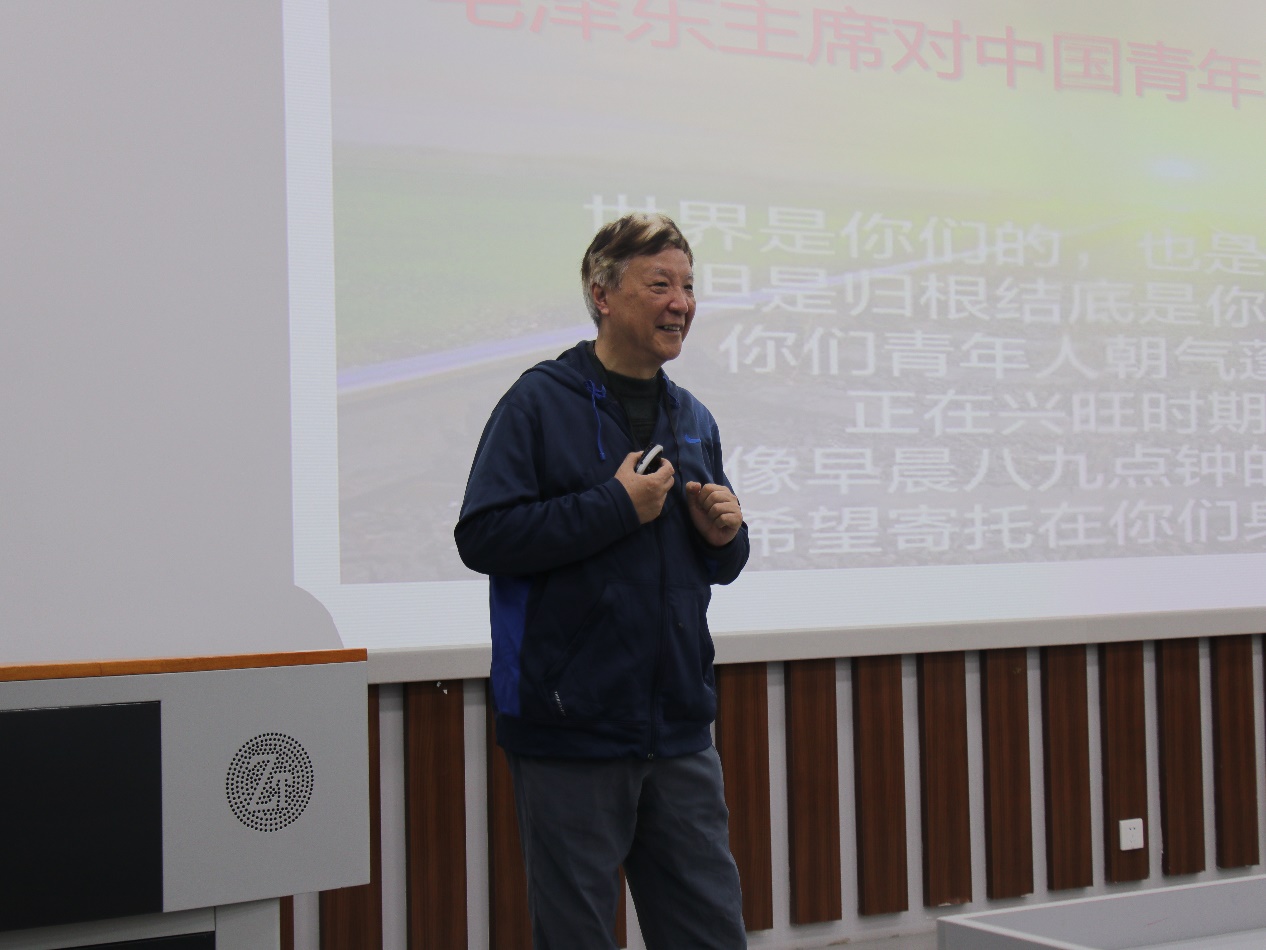 郑世珏借助多组照片,向在座学生展示了过去几年计算机人在多个领域的不同成就,并呼吁2023级新生:“不要把自己局限在一条赛道,更重要的是要牢记使命,成为社会有用之才。”最后,郑世珏引用毛泽东的经典话语“世界是你们的,也是我们的,但归根结底是你们的!”激励学生们成为有用之才,国之栋梁。