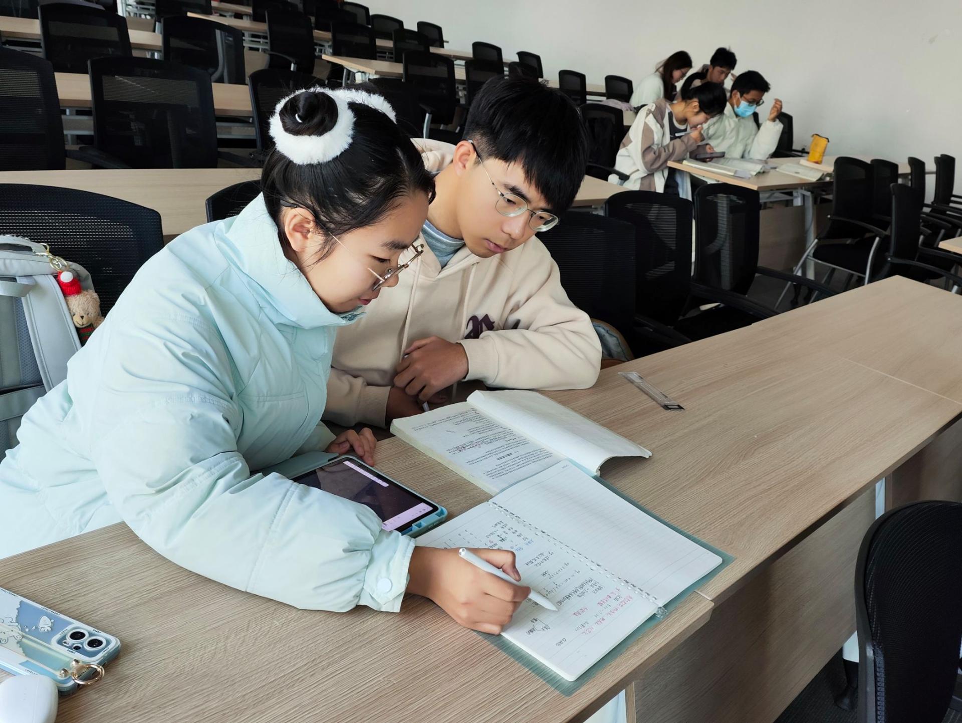 活动中,志愿者们采取多种辅导方式,在营造轻松教学氛围的同时解决了新生学习过程中的疑惑之处。2023级新生李建坤,在志愿者李为的讲解下,进一步加深了对离散数学知识的理解,弥补了之前对于题型认知不全面的短板。志愿者翟苌坤为23级新生刘贤政布置了作业,并对其中出现的问题进行了答疑辅导,使其认识到自己的问题所在并改正。