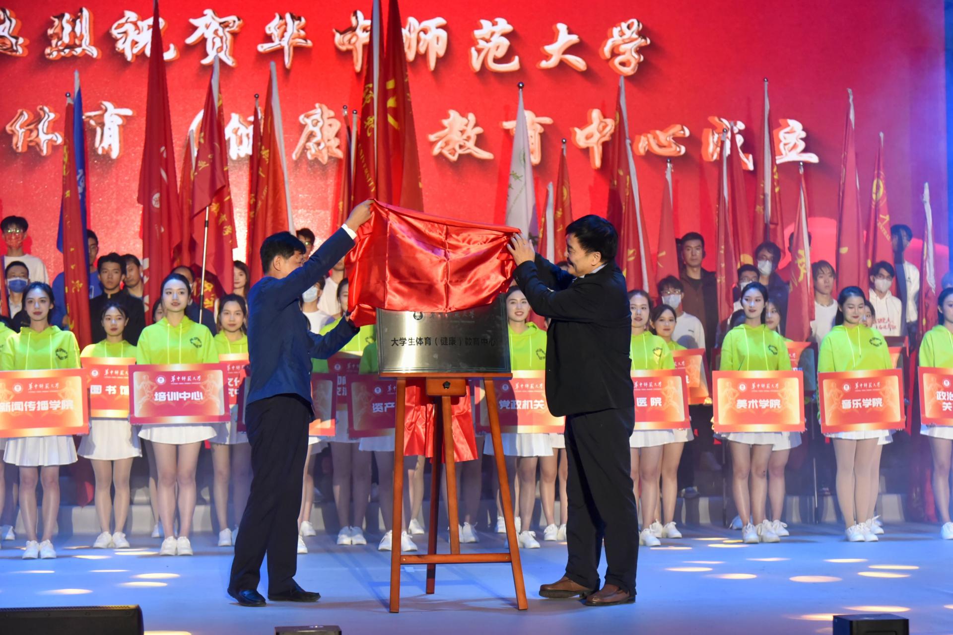 奏唱中华人民共和国国歌后,信息管理学院院长李玉海致辞。他祝愿参赛运动员们取得优异成绩,并感谢运动会各工作单位。运动员代表和裁判代表进行宣誓后,由校党委书记赵凌云和大学生体育(健康)教育中心主任王健共同进行揭牌仪式。赵凌云宣布:“华中师范大学2022年大学生体育文化节暨校运动会开幕。”
