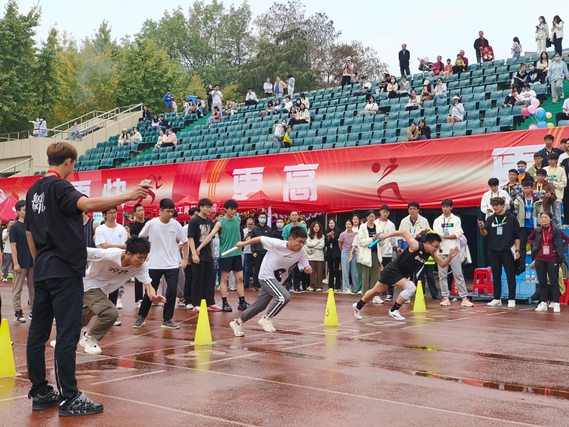 临近十点,50米迎面接力赛预决赛即将开始。16名运动员代表信管出战。“砰”的一声枪响,男子组沈翰林同学似箭一般冲出,跑过50米,将交接棒交给女子组的第一位同学,比赛正如火如荼地进行着。此时,站在赛道旁的信管学子们大声地喊着加油,为运动员们呐喊助威。赛程过半时,出现了交接棒落地的失误,但是信管的运动员们没有慌神、气馁,他们快速调整状态,拿回交接棒继续比赛,赛道旁的加油声也越来越大。最终,在小组赛中取得了第二名的成绩。