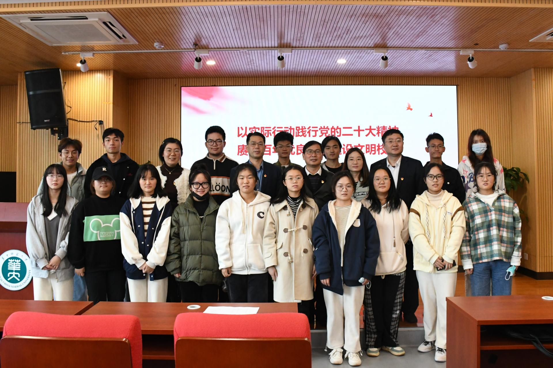 华大青年讯(通讯员 黄彦松 何靓)11月19日上午,为了提升信息管理学院和心理学院学生党员的党性修养,积极开展党政工作,贯彻落实党的二十大精神,信息管理学院党政班子、学生党支部书记、系主任、班团以及心理学院班子和师生骨干齐聚一堂,在10001报告厅开展了 “以实际行动践行党的二十大精神,赓续百年优良传统建设文明校园”主题党课教育。本次党课的主讲人为华中师范大学副校长任友洲,主持人为信息管理学院党委书记王雨露。