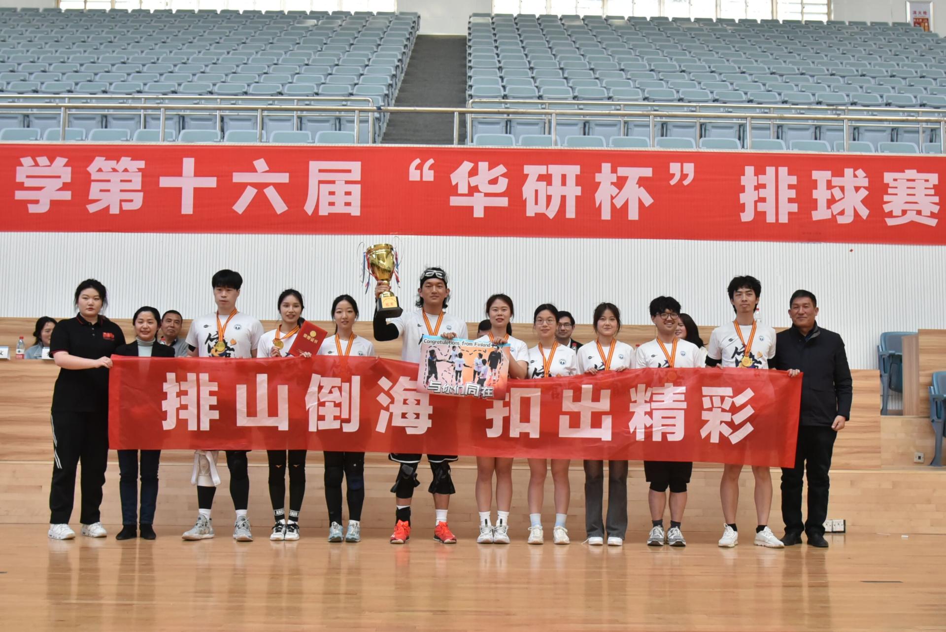 华大青年讯(通讯员 赵咏莲 孙琦爽 洪海慧)为了培养大学生的体育精神,彰显青春活力,展现积极向上的风貌,3月4日下午,第十六届华研杯排球赛决赛在佑铭体育馆举行。信息管理学院排球队经过一路过关斩将闯进决赛并勇夺冠军。信息管理学院院长李玉海,本科生辅导员肖丽霞、蒋可鸣,研究生辅导员王妞妞以及本研学生到场为信管排球队鼓劲加油。