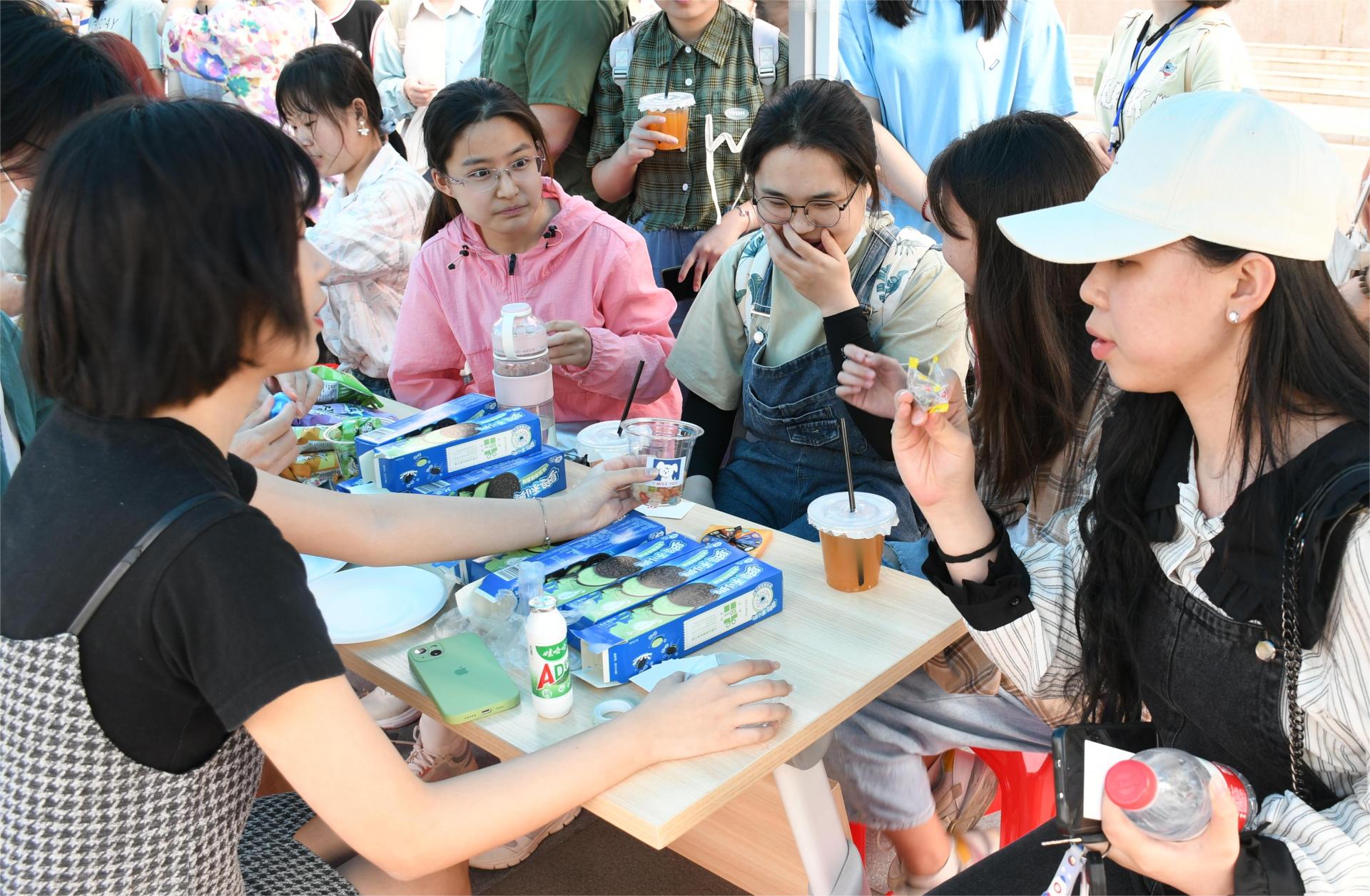 此次美食文化节鼓励学生动手参与到美食文化体验中来。在“神农尝百草”活动中,学生需要通过戴上眼罩品尝饮料,来猜调制饮料的原料。在“是艺术啊”活动中,学生可以在工作人员的指导下,亲手制作DIY糖画、冰皮月饼、免煮青团等美食,让学生在实践中学习饮食文化,还能创造出独特的美食,富有创意性和趣味性。