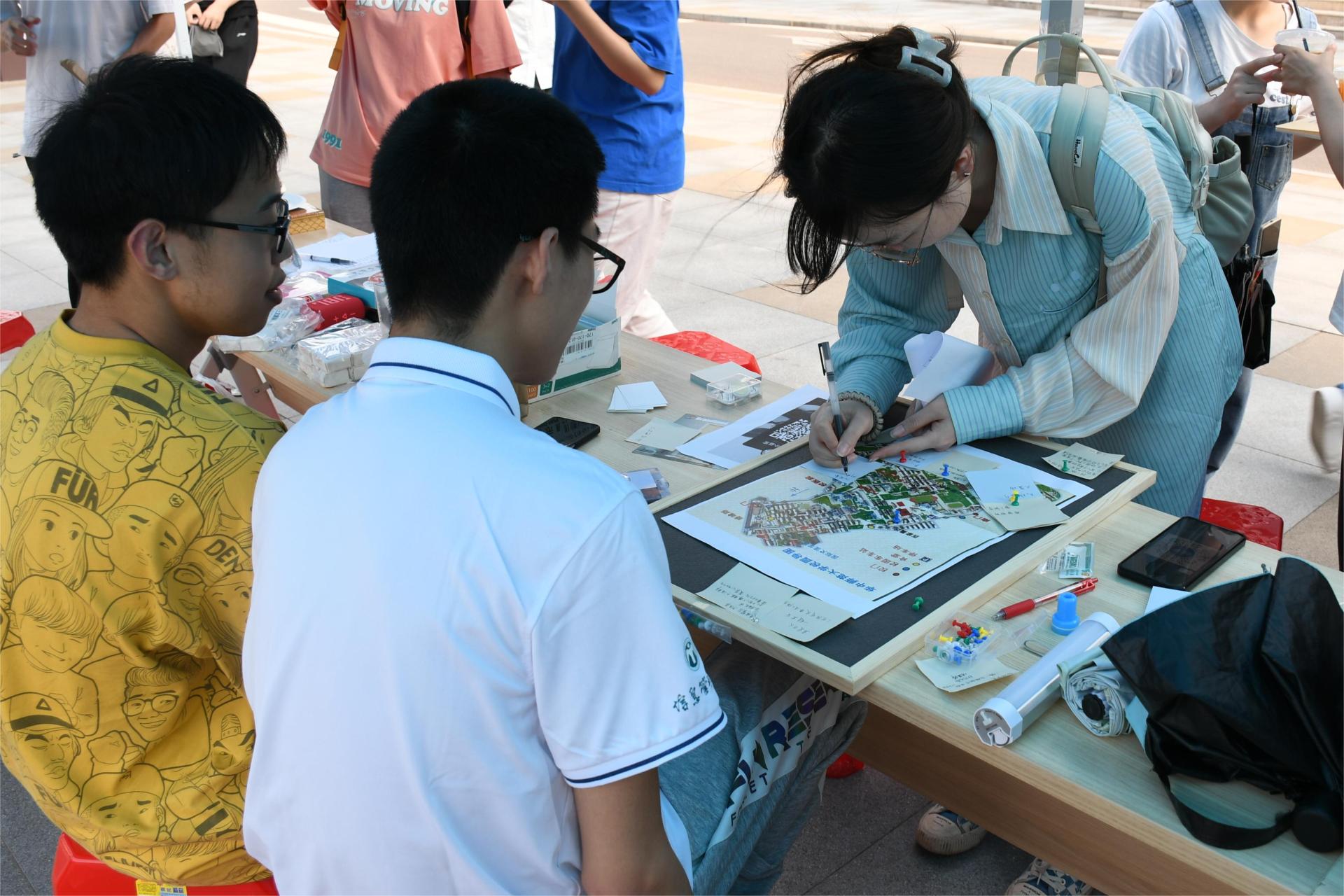 除了动手活动外,本次美食文化节还设有文化交流活动,意在让来自五湖四海的同学们交流自己家乡的美食文化。文化交流活动设有三个环节,在“美食故事”环节中,参与的同学可以将自己家乡的美食故事写在便利贴上,贴上展示板与大家分享。在“美食地图”环节中,让同学将自己喜爱的餐厅标注在地图上,分享给同学一同去享受美食。同时还有“美食摄影”环节,参与者可以网上投稿美食摄影,现场分享。最后三种板块由现场参与者进行投票评比,评选出最佳作品并颁发奖项和小礼品。