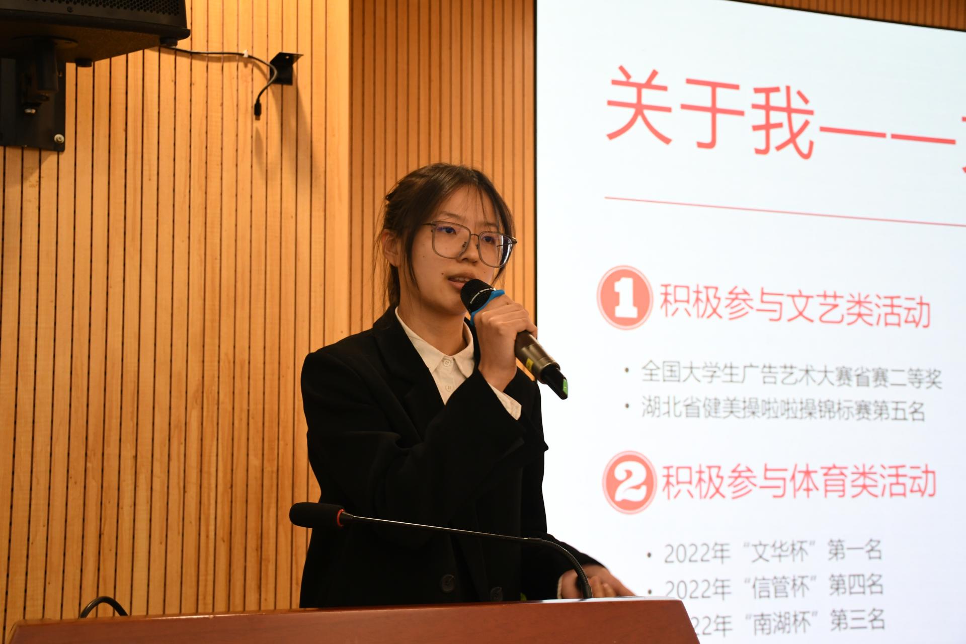 九位候选人依次进行答辩环节。2022级刘文玲、罗冰垚、路雅丽,2021级周欣然、梅莹凤、赵悦彤、陈文景、安飒、李谕希参与竞选。答辩人分别从个人简介、学生工作、志愿服务、个人荣誉、未来展望等方面进行阐述。其中,罗冰垚讲述了自己在青协所做的志愿服务活动及自己对未来学生工作的展望,表达了自己愿做学生工作的领头羊、桥梁和孺子牛的决心。李谕希则从“我是什么样的人”、“为什么要做学生工作”、“要做什么样的学生工作”三方面进行了答辩,表达了自己对学生工作的深厚感情和情怀。