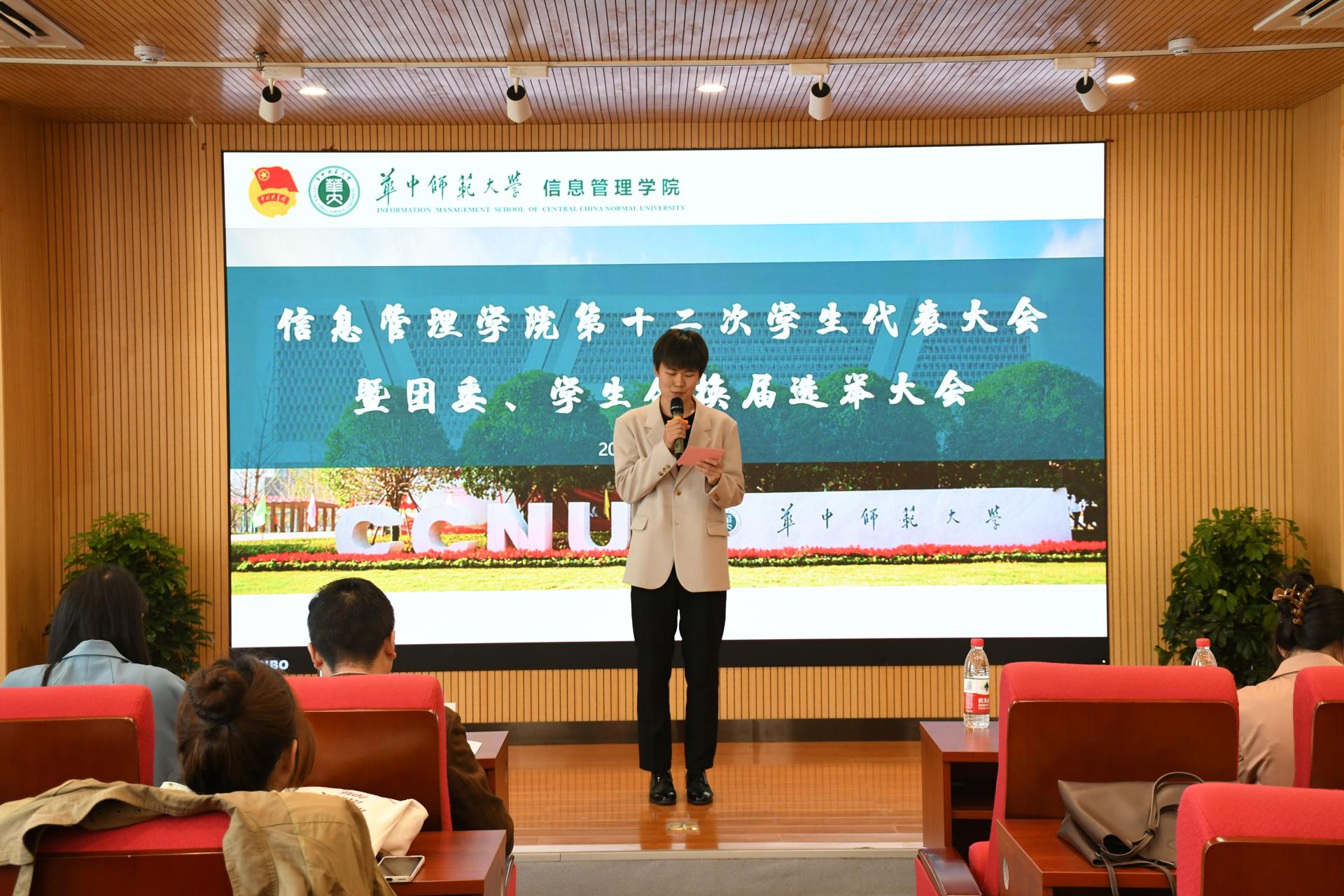华大青年讯(通讯员 张琪 朱炫)为充分调动青年学生关心院校发展和组织建设,提升团委、学生会组织力量,5月14日下午,信息管理学院第十二届学生代表大会暨团委、学生会换届选举大会在南湖综合楼N10001举行。出席本次会议的有信息管理学院党委副书记王涛、团委书记肖丽霞、团委副书记蒋可鸣,兼职辅导员余婉君和张学偲、第十届学生会主席团成员宋德风、第十一届主席团成员,以及各年级学生代表。大会的主要任务是听取和审议学生代表大会筹备委员会提案工作报告,选举产生新一届学生委员会。