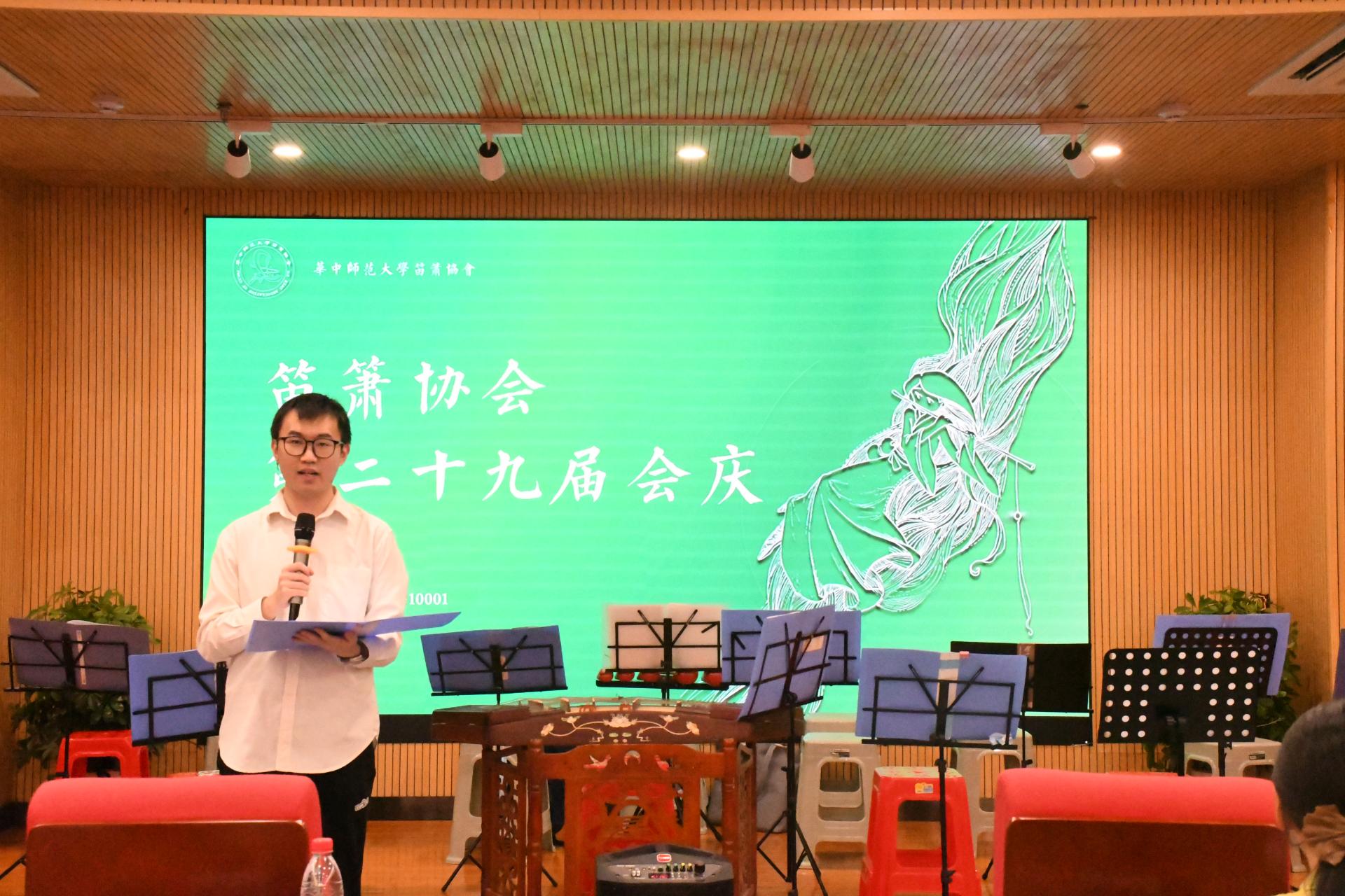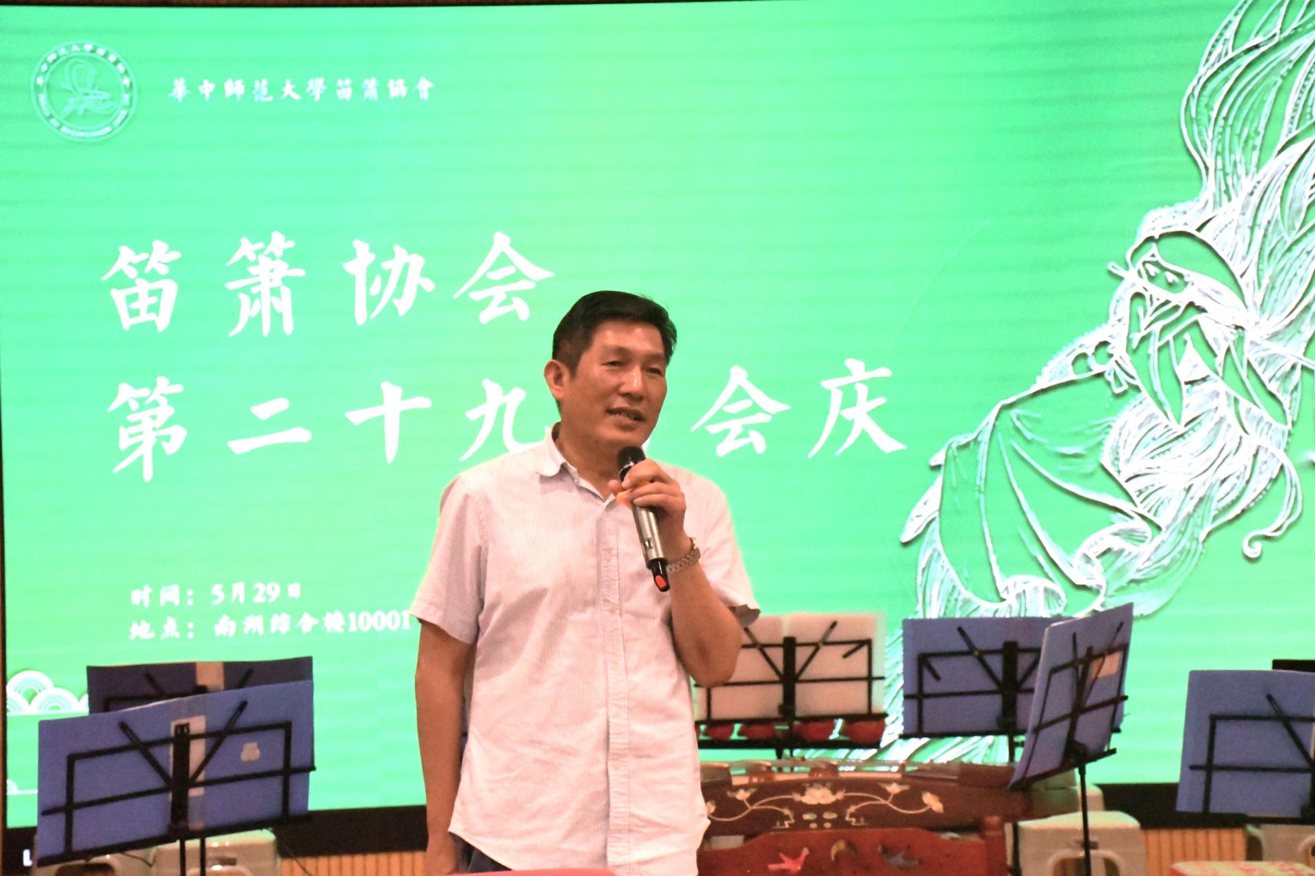 华大青年讯(通讯员 黄彦松 何靓)为传承中华传统文化,展现华师社团风采,将美育融入师生课堂,5月29日晚,华中师范大学笛箫协会在南湖综合楼10001举行了第二十九届会庆活动。信息管理学院院长李玉海、笛箫协会指导老师娄策群,团委书记肖丽霞,以及华中师范大学老年大学民乐团、笛箫协会、阮艺协会和狗尾草陶笛社成员参与此次会庆,本次活动由笛箫协会会长徐思成主持。