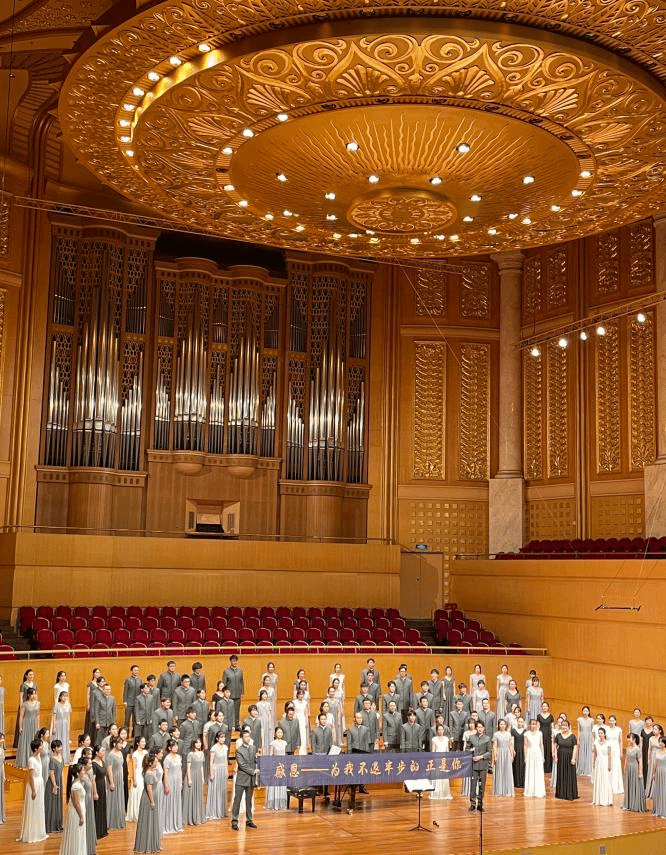 当谈到艺术实践,从大二天空合唱团复工开始,郑淑方便加入了天空合唱团,目的是学习排练合唱的技能和舞台表演实践经验。在这其中她确实也学习到了很多在课上学不到的知识,虽经历了没有节假日的辛苦排练,却也收获了许多在舞台上震撼心灵的感动和宝贵的友情。