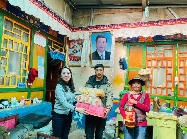 进藏一年的时间里,鲁芳蕾两次前往山南市隆子县雪莎乡下木达村开展结对帮扶工作,徒步前往海拔4000多米的贫困户家中走访,与他们话冷暖、交真心,全面了解、关心帮扶对象在日常生活、看病就医、政策保障等方面遇到的困难,及时予以解决.。鲁芳蕾将爱心物资和湖北人民送来的情谊送到边境贫困户的家中,把党和国家的关怀送到边境贫困户的心坎上。