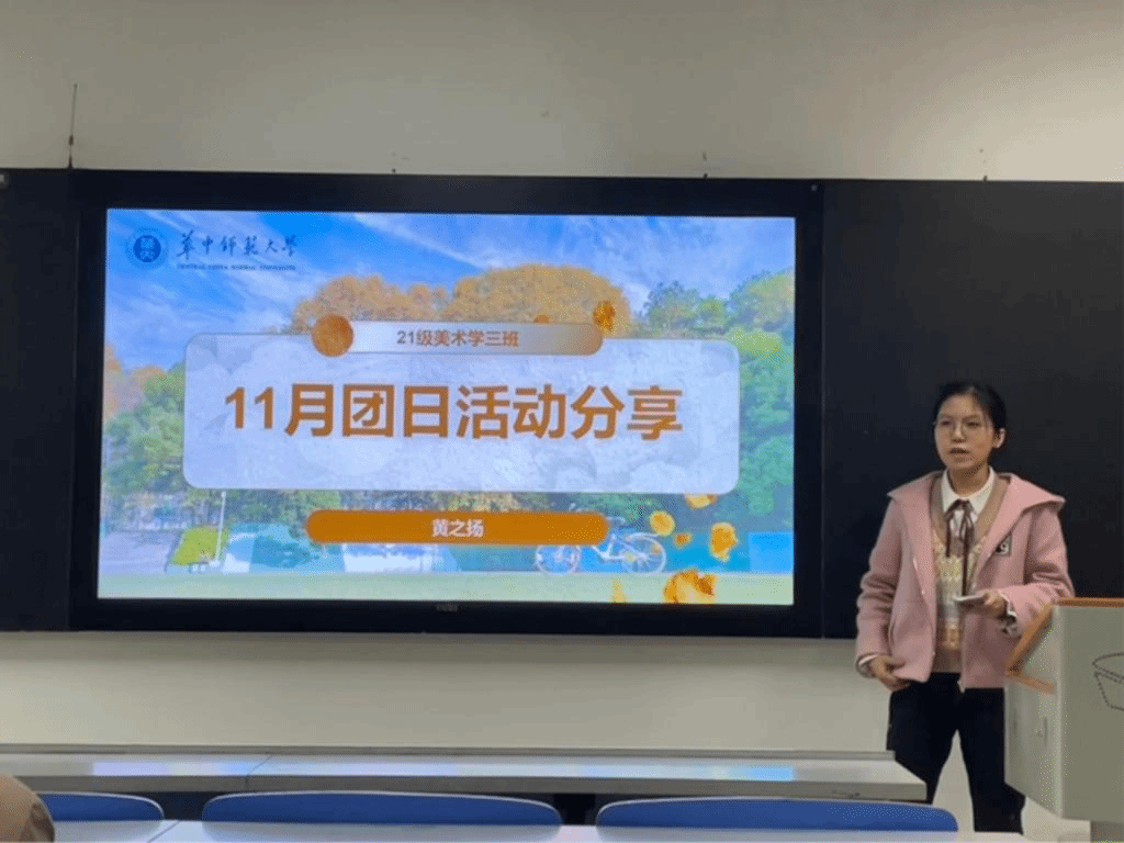 会议第三项,本次会议邀请了华中师范大学美术学院美术学三班团支书黄之扬同学和美术学一班团支书许悦悦同学作为优秀团支书为我们进行工作事例分享。黄之扬同学从团日活动入手,系统介绍了她在举办团日活动过程中的前期准备、中期组织以及后期宣传的相关工作。她向大家提出建议:“我们应培养发散性思维,拒绝形式主义,明确班委职能分工,使大家在活动中切实有所收获。”许悦悦同学从团支书日常工作工作入手,对如何调动同学提交截图积极性、更好地开展团日活动提出了一系列建议。她指出:“如果有心把班上的工作做好,就需弄清其他同学是怎么想的,在此基础上合理引导,才能真正做好班集体工作。”