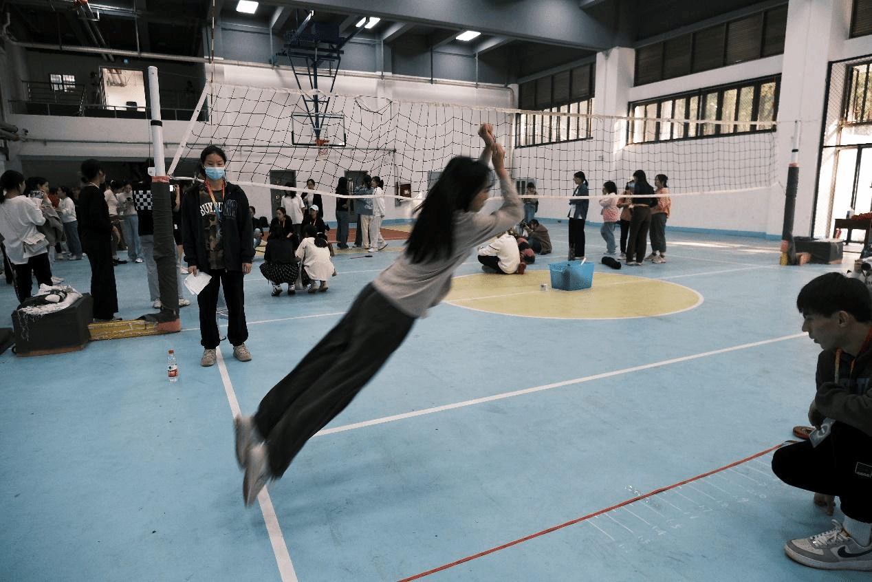 随后进行的是女子立定跳远项目。美院三十名选手依次参赛。她们挥动双臂,跃跃欲试,一跃而起,落地有声。跳远运动员们将平日的不懈努力和不断地训练化为赛场上的坚定一跃,每位选手都无比自信与专注。最终,美院在女子跳远项目上取得了不错的成绩。