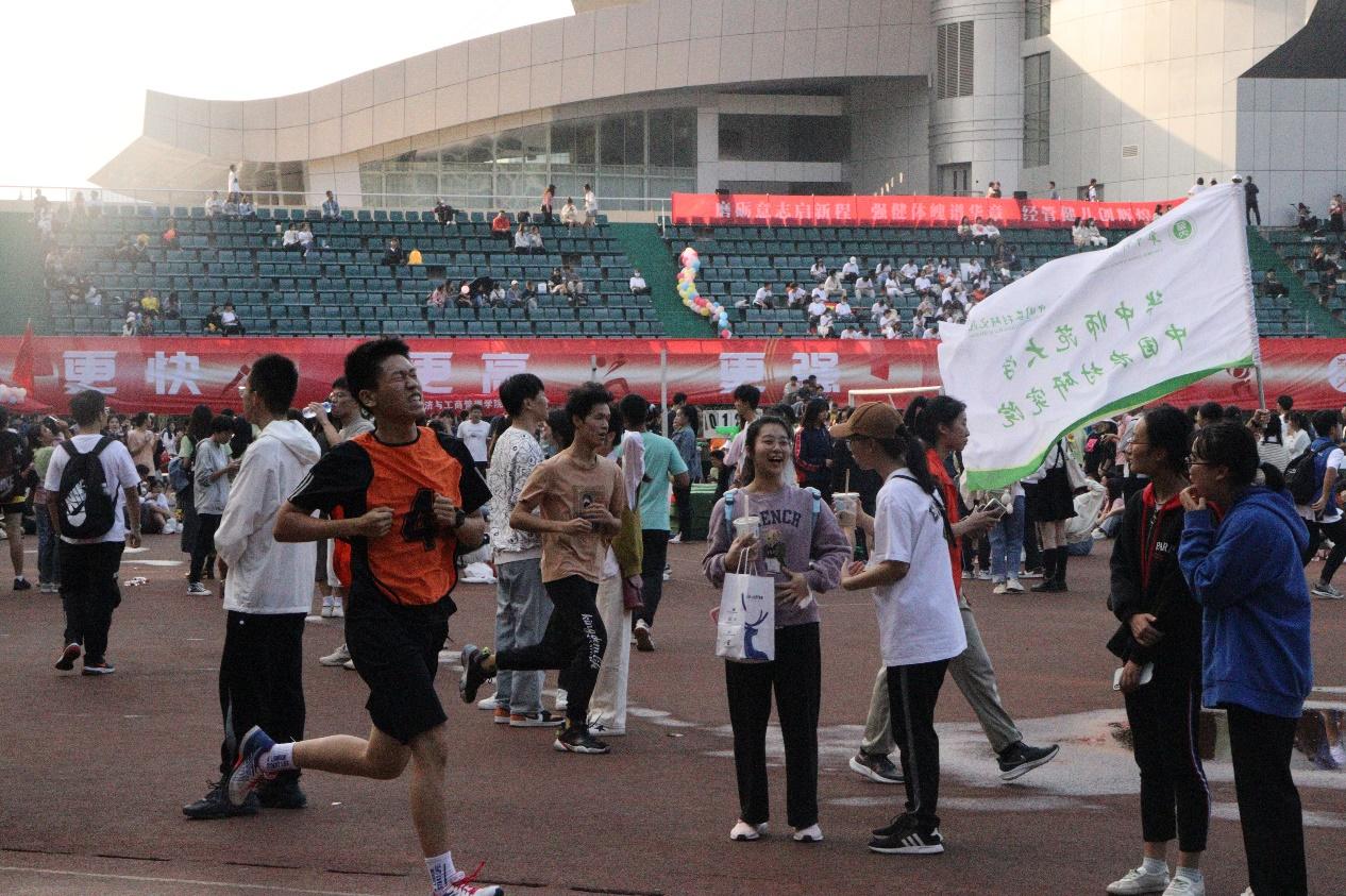 男子1500米比赛随后进行,万李长风比赛开始就保持着既定策略,紧咬着领跑的选手。虽然在过程中被第一梯队拉开,但选手还是保持着自己的速度,并且没有被身后的对手超越,凭借耐力和意志力,最终冲刺完成了比赛,展现出美院学子毅力、耐力和永不放弃的精神品质。