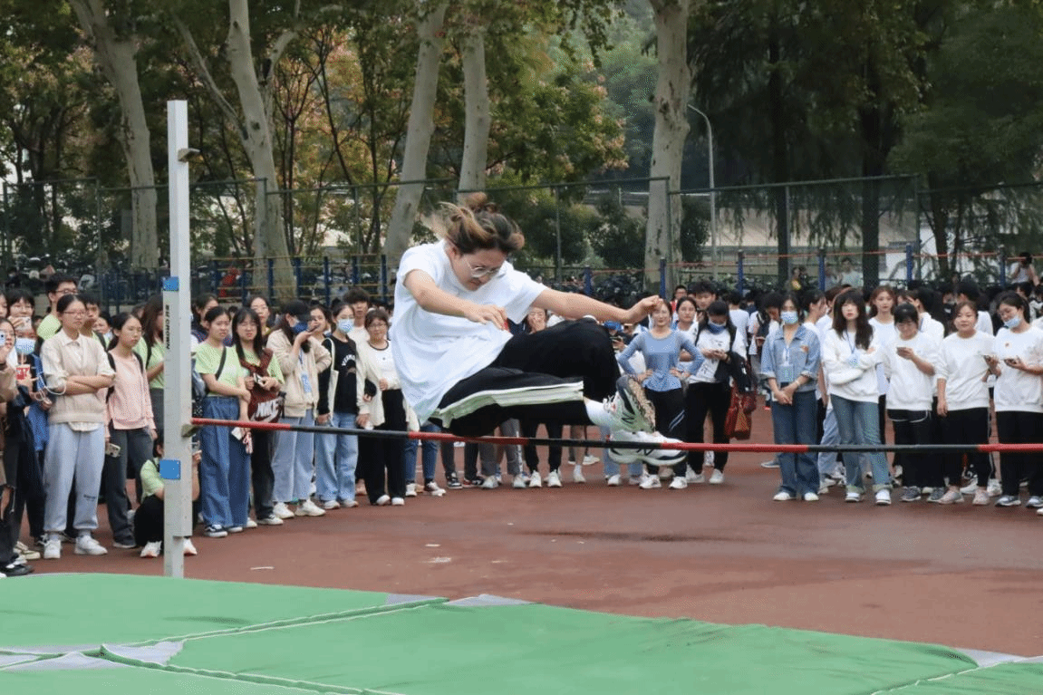 与此同时,同学刘含晔、欧江璐参加了女子跳高项目。两位选手充分演绎了助跑、起跳、落地的标准跳高动作。其中刘含晔在项目中成功过杠,既成功完成了对自己的挑战,更实现了美院在跳高项目上的突破。回想起此前训练时的艰辛付出,刘含晔的喜悦更是溢于言表。