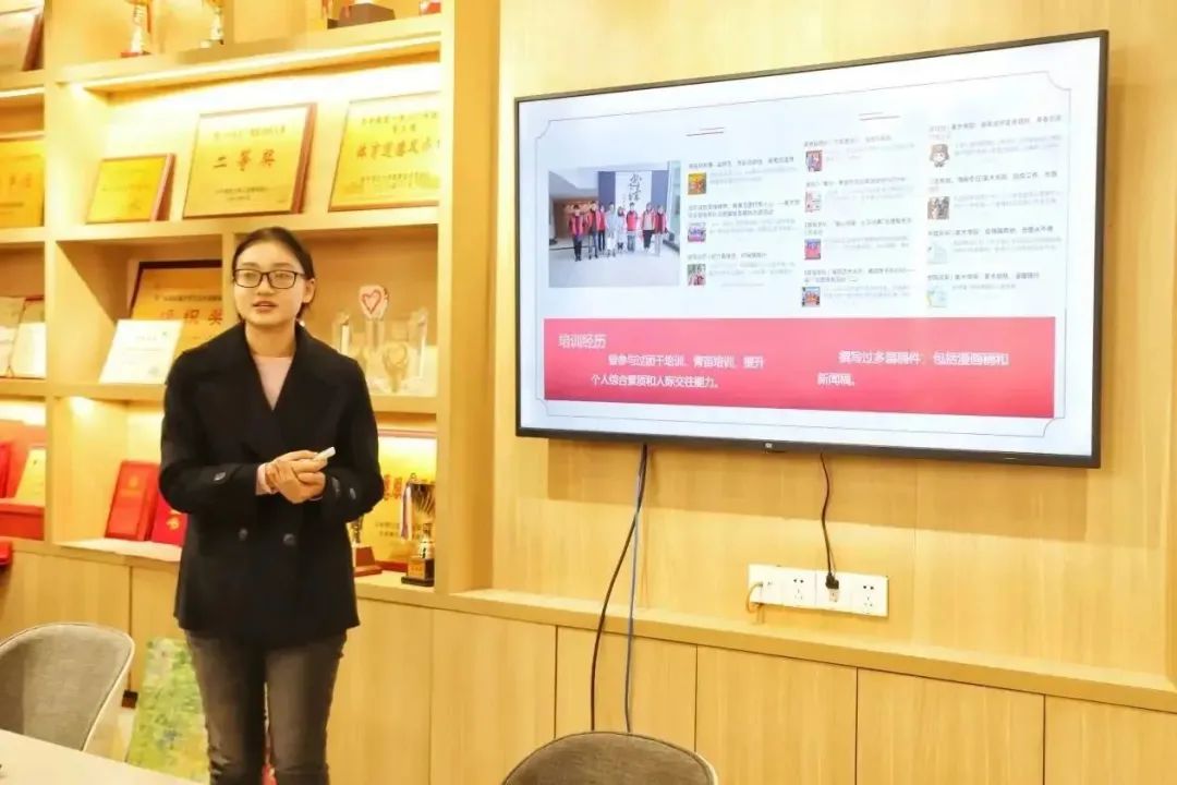 答辩会正式开始,13名入团候选人结合PPT从入团动机、对团的认知、基本情况、学习状态等方面进行细致展示,他们讲解清晰、逻辑缜密,从各个方面向团组织表明自己入团的坚定信念。答辩过程中,同学们毫不怯场,逻辑清晰、对答如流,表现出积极向团组织靠拢的迫切心情,并表示今后定将积极努力学习,严于律己,争做勇于奉献、敢于担当的时代新青年。