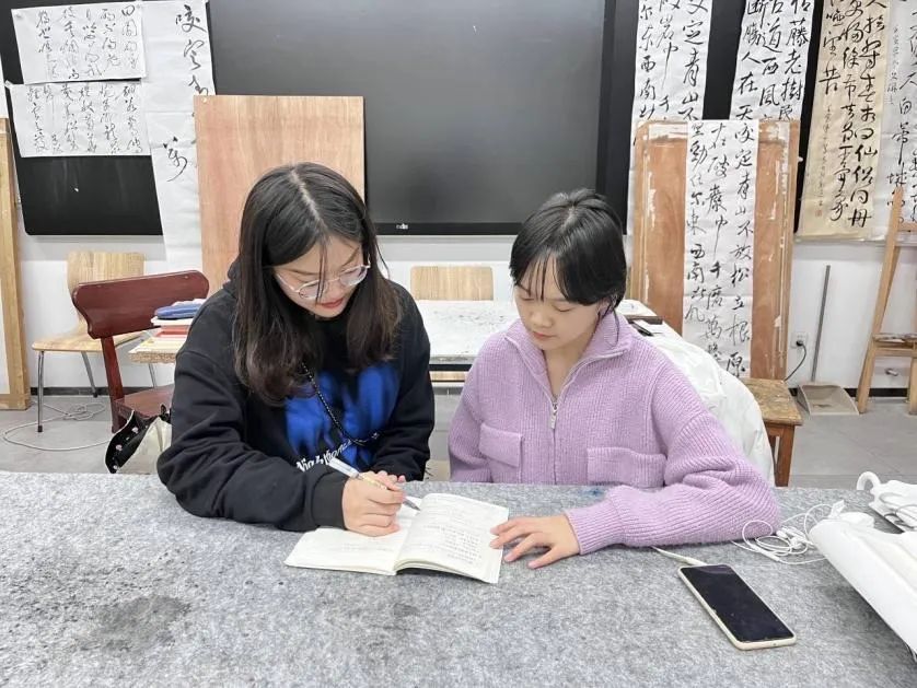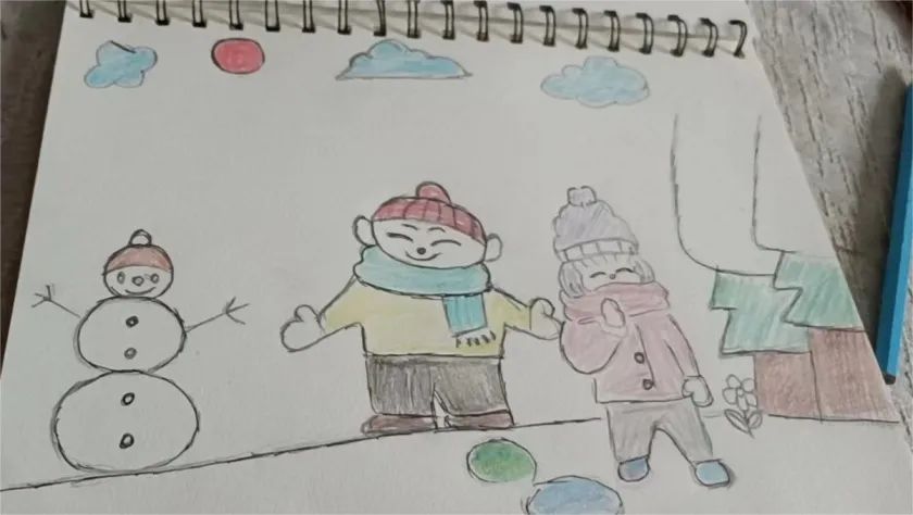 带领学员们了解小雪的相关知识后,志愿者展示出准备好的画稿与作画过程视频,鼓励大家以此为参考进行创作。画面内容是以人为主体的雪景,传递出迎接冬天的喜悦之情。在志愿者的引导下,学员们纷纷拿起画笔发挥想象,巧妙地加以创新,获得了志愿者的肯定。