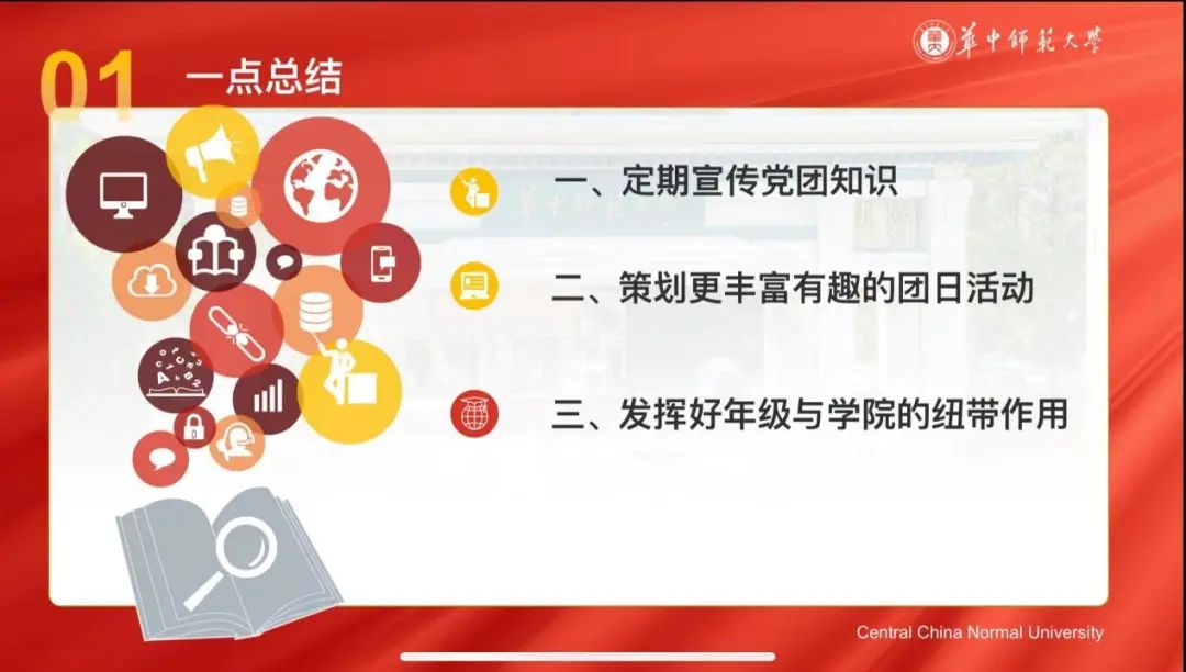 随后是由各班团支书以提前抽签决定的顺序进行述职。述职团支书们基本围绕团支部介绍、履职尽责情况、工作特色亮点、团日活动开展、工作思考以及未来展望进行述职。多名团支书展现了其带领全体同学在各媒体平台上团日活动的宣传情况,为往后相关工作的开展奠定了良好基础。