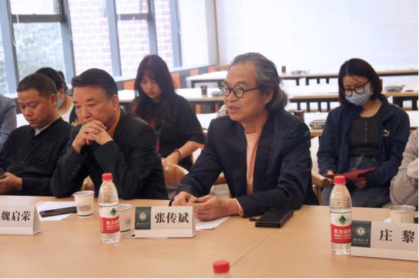 华大青年讯(通讯员 党慧 苏畅 李白洁)5月22日下午,华中师范大学美术学院抓住党课这一最常用、最基本的学习教育形式,以“学习新思想 奋进新征程”为主题开展了一场别具特色的书法党课,推动习近平新时代中国特色社会主义思想入脑入心。著名书法家、东湖印社执行社长张传斌、湖北省书画家协会主席魏启荣、湖北画报社社长陈明华特邀出席,美术学院党政领导班子成员、学院党委委员及党员代表参加活动,会议由学院团委书记孙宇主持。