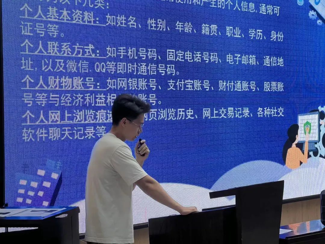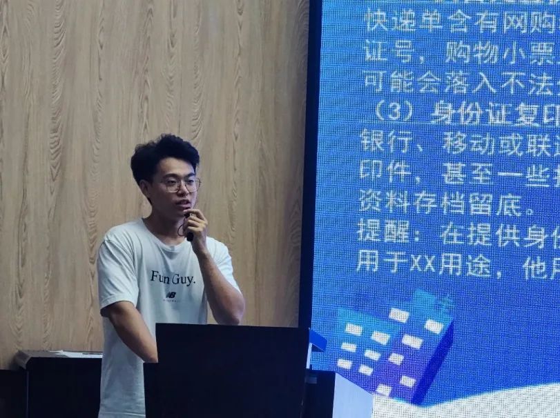 讲座由浅入深,按照个人信息的种类、个人信息泄露的危害、如何维护个人信息安全的顺序进行。首先,李秀阳向同学们介绍了大学生在网络上经常使用和产生的个人信息,使得同学们对保护个人信息和防范网络攻击有了更清晰的认识。讲座随后展示了有关个人信息泄漏而造成的恶性案件,通关相关案件,同学们了解到了个人信息泄露对个人和社会造成的巨大危害,为保护个人信息安全敲响了警钟。