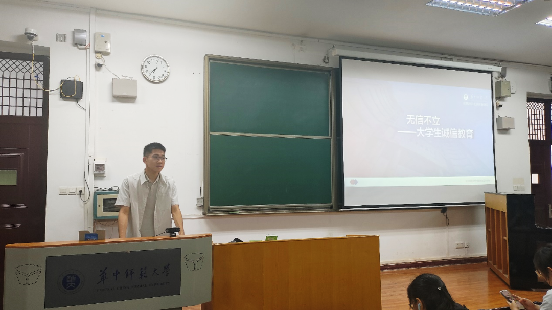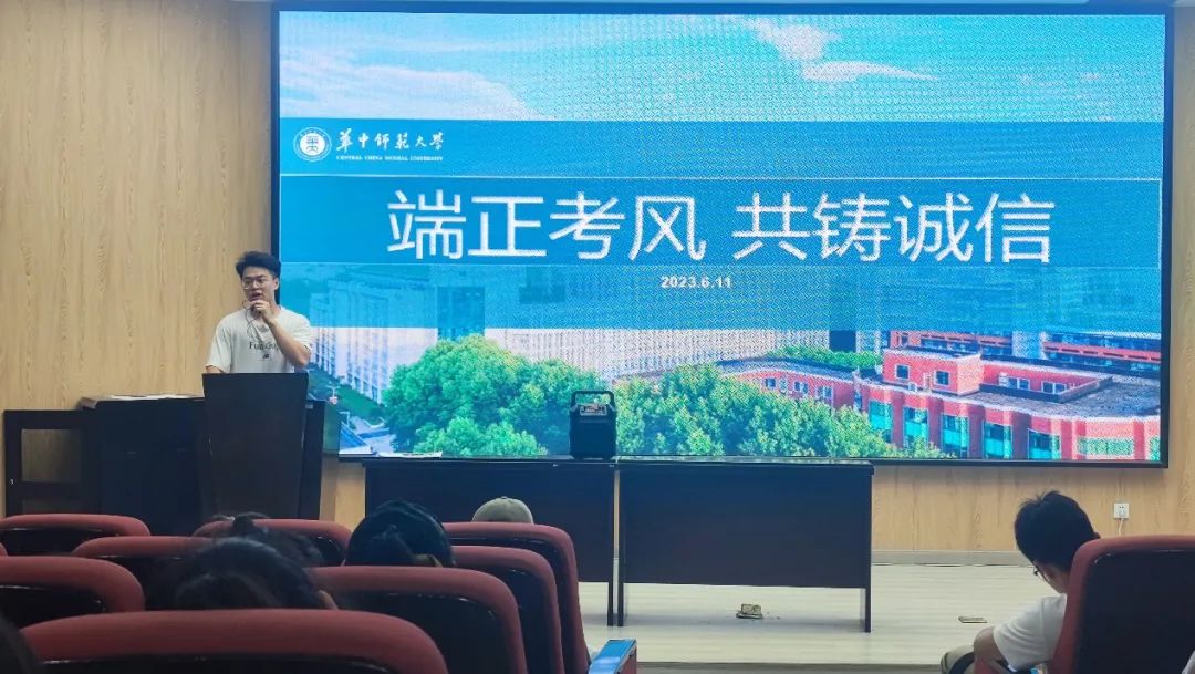 2022级本科生辅导员李秀阳通过讲解《华中师范大学学生考试违规认定与处理办法》向同学们强调了遵守考试纪律的严肃性。号召同学们制定合理的复习计划,合理安排复习时间,掌握重要的知识点,熟悉主要内容,利用最后的时间查漏补缺,提高复习效果,凭借自身实力考出优异的成绩。