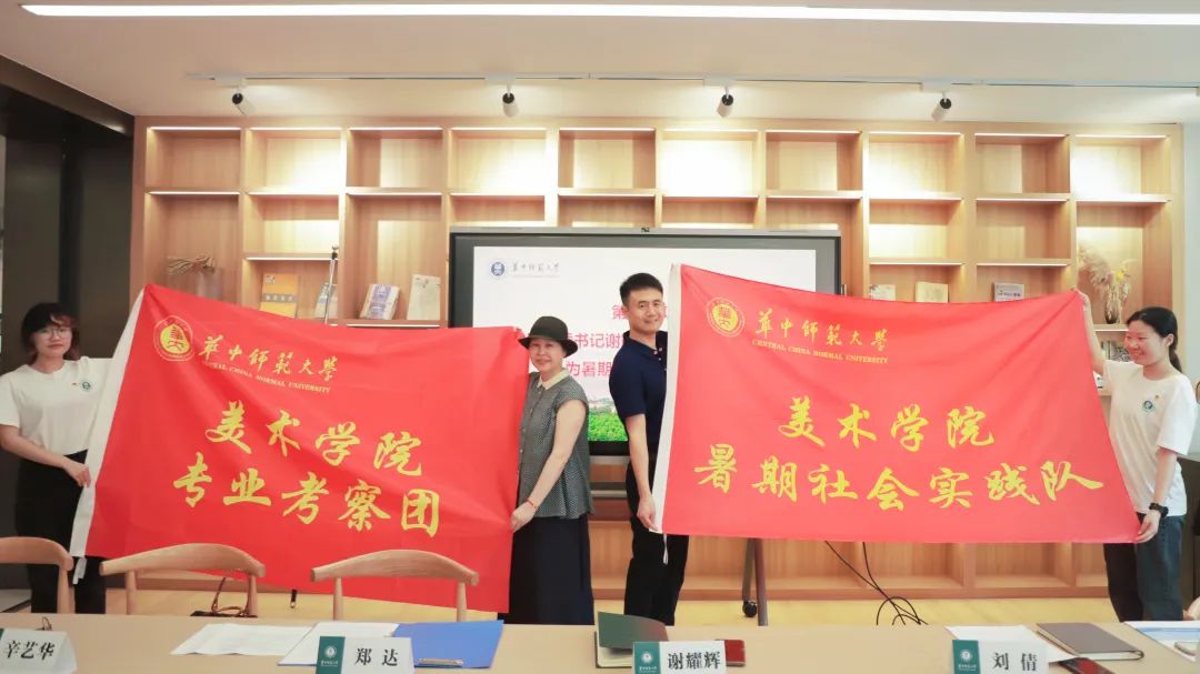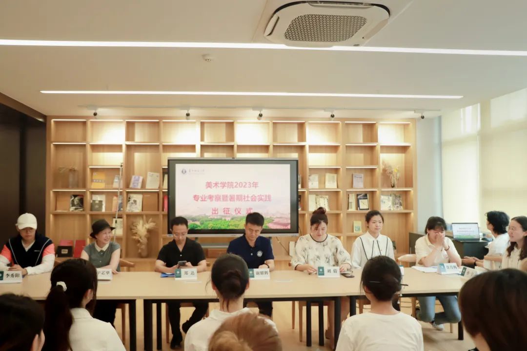 华大青年讯(通讯员 党慧)6月21日下午,美术学院2023年专业考察暨暑期社会实践出征仪式在二楼阅览室举行。美术学院党委书记谢耀辉,院长辛艺华,教学副院长郑达,党委副书记刘倩,社会实践带队老师王雪、李秀阳,辅导员徐月梅,学生代表共计40人参加出征仪式。仪式由团委书记孙宇主持。