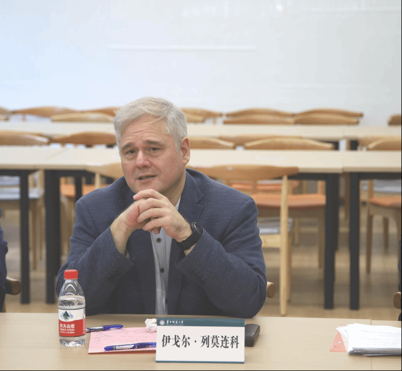伊戈尔·列莫连科(Igor Remokenko)指出艺术方面的交流合作是中俄交流合作的一个重要方面,不少来自中国的学生在他们学校学习并留校任教,同时他表示莫斯科市立师范大学与华中师范大学在专业设置上具有相似性,相信在华中师范大学国际处的牵线搭桥下双方会在专业建设与语言教学方面具有良好合作。