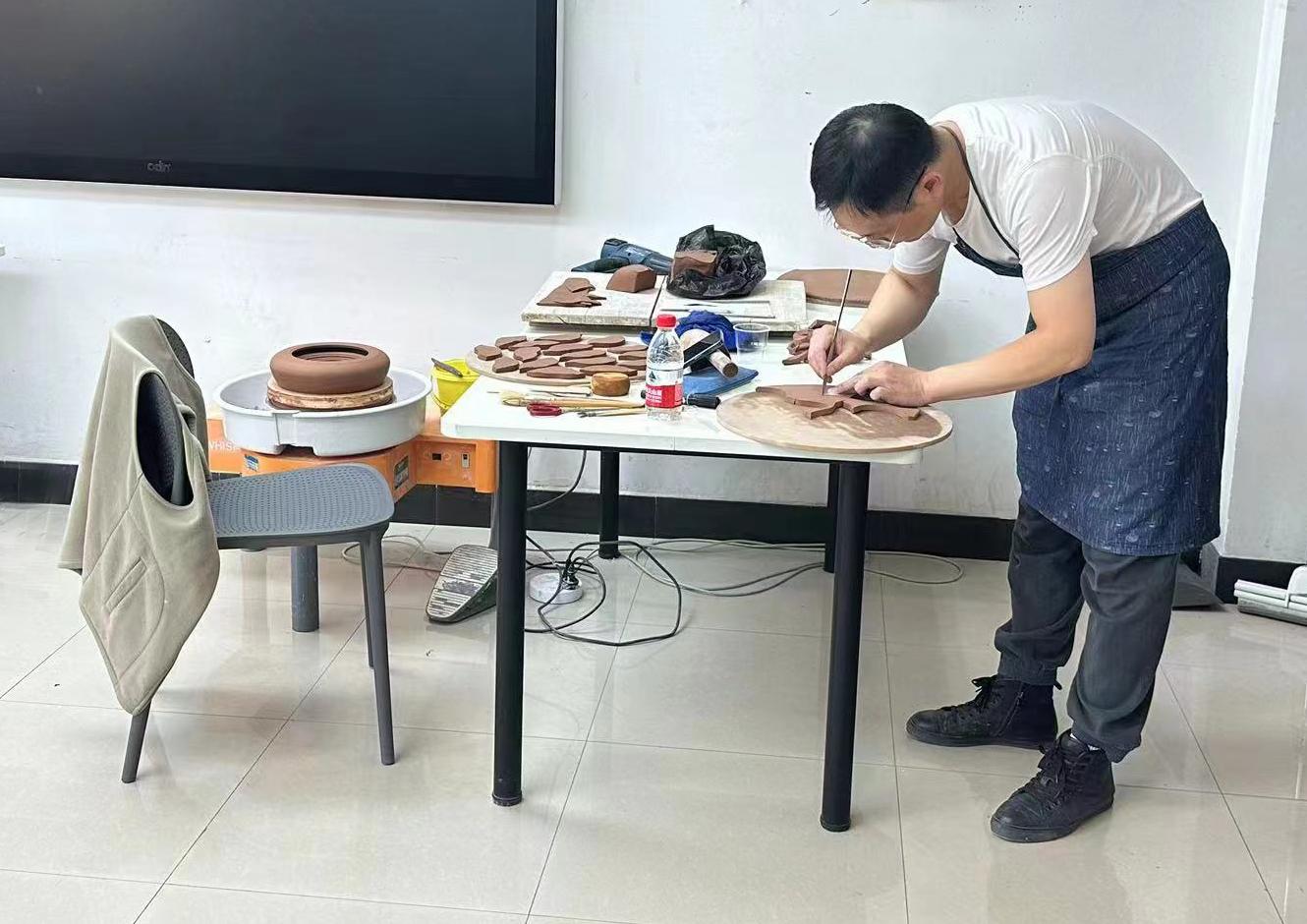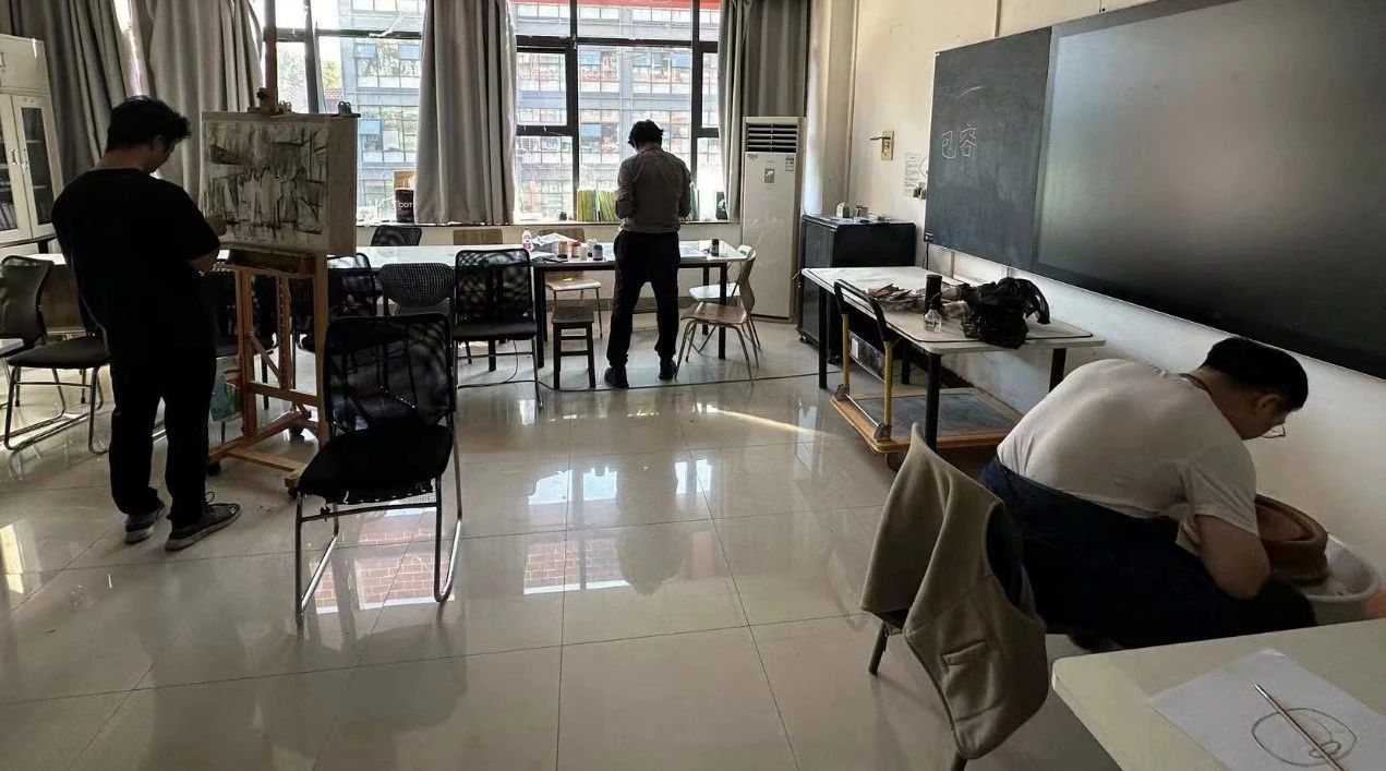 “专业技能展示”首先举行。创作主题为“包容”,限时150分钟,在造型表现和设计应用中任选一类进行创作。教师徐谦、王成武、张聃分别选择通过素描、陶艺和丙烯画等形式进行创作。