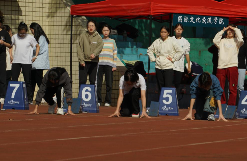 女子一百米比赛开始前,运动员们集中检阅,进行热身运动。卢慧倩和杨亦孜在场地旁拉伸肌肉、活动筋骨,把身体调整到最佳状态。卢慧倩表示:“紧张肯定是有的,参加一百米的选手很多,这个项目竞争非常激烈。相较于成绩而言,我更在意的是可以和这么多热爱体育的同学们一起同场竞技,不论结果如何,我会尽自己的全力争取做得更好。”