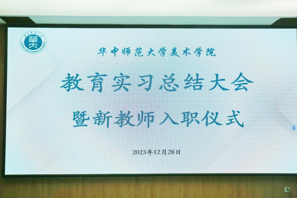 华大青年讯(通讯员 苏畅)为切实提升2020级师范生和2022级教育硕士的教育教学实践能力,确保学生们未来在教育岗位任职的工作质量,从9月11日开始,美术学院百余名学生奔赴全国各地70余个实习点进行了为期十周的教育实习。12月28日上午,美术学院教育实习总结大会暨新教师入职仪式在美术学院一楼报告厅举行。学院党委书记谢耀辉、院长辛艺华,教育实习导师高细媛、汪楚雄、喻颖、李舵、张超、王成武、张南、宋磊、杨峰,以及全体实习生共同出席了本次大会。会议由薛嘉雯主持。