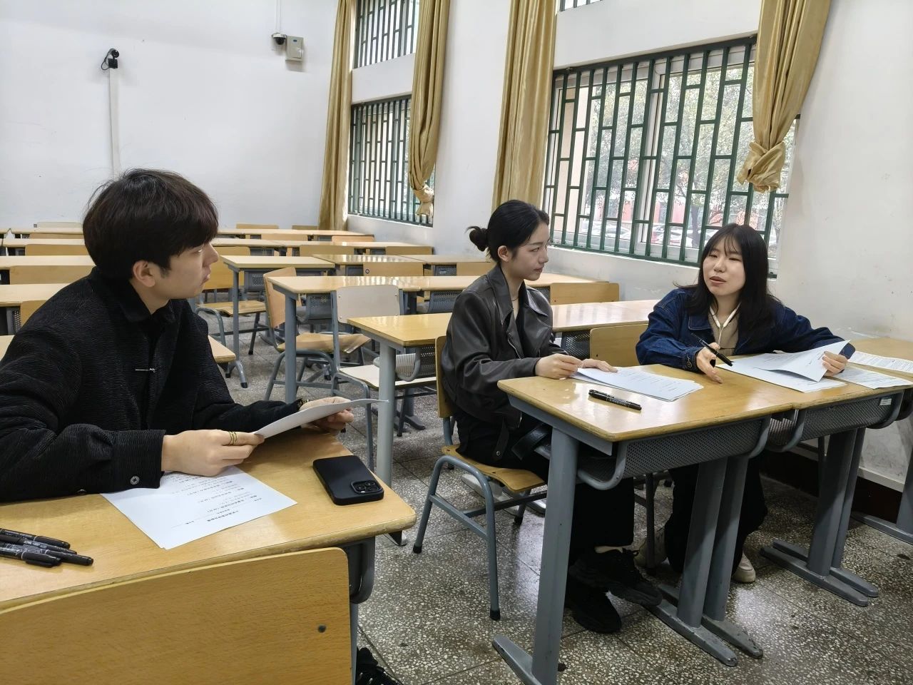 活动还原真实面试现场,面试者现场随机抽取题目进行说课,面试官围绕教师标准、教育理念、真实教学情景处理方法等方面进行结构化提问,力求在实际模拟中提高同学们的教学能力及应变能力。面试开始前,三位面试官认真深度剖析了每位面试者的资料及教学案例,针对每位面试者情况提出了更具专业性和指导性的问题。同时,三位面试官共同对教材、结构化问题以及评分细则标准等问题进行了深入的研究和讨论,以保证评分过程中标准一致、公平公正。