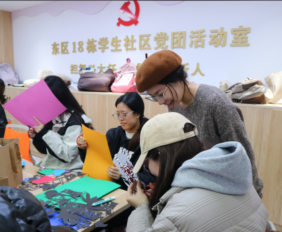会议伊始,刘倩依次介绍与会师生情况,并邀请各位同学进行交流,大家共同制作各民族形象的彩色剪纸。同学们一边动手创作,一边畅谈关于民族文化的传统习俗,并提出自己关于专业学习、就业政策等方面的疑惑。
