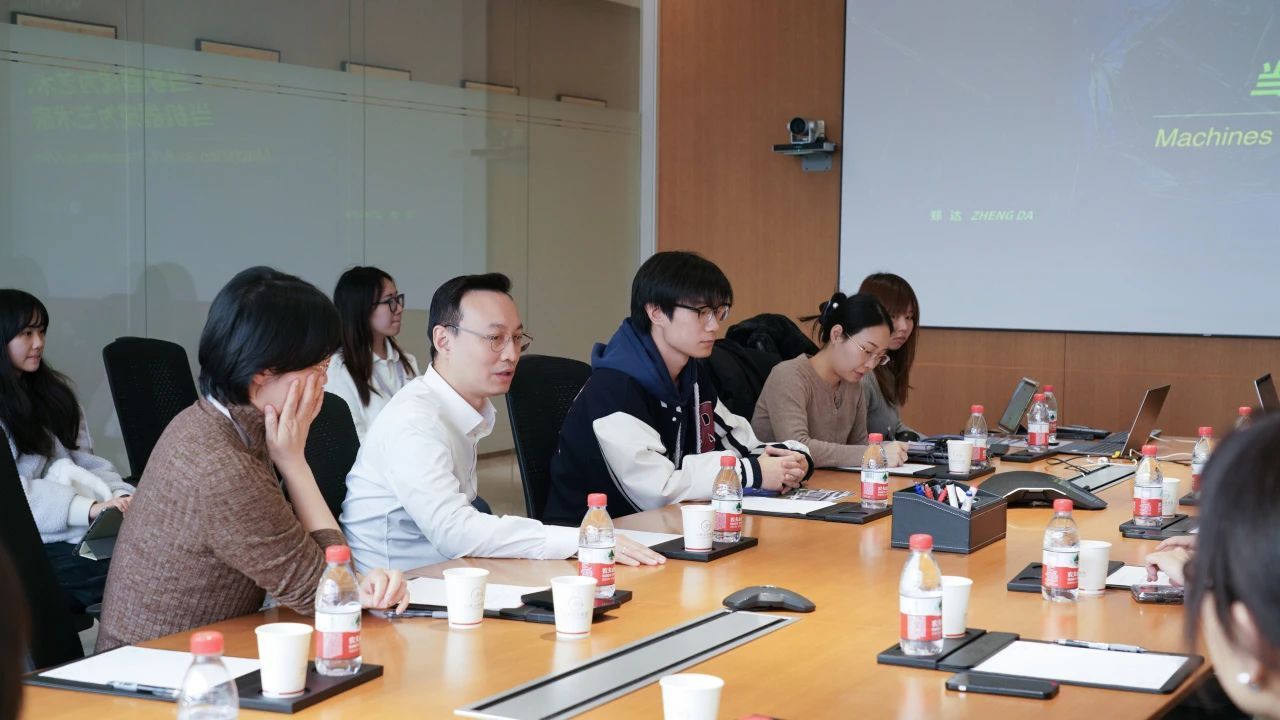 参观结束后,郑达与湖北九峰山实验室主任丁琪超等科研人员进行了深入交流。双方就艺术与科技的融合、设计学交叉学科人才培养、科研合作等方面展开了热烈讨论,达成了多项共识。