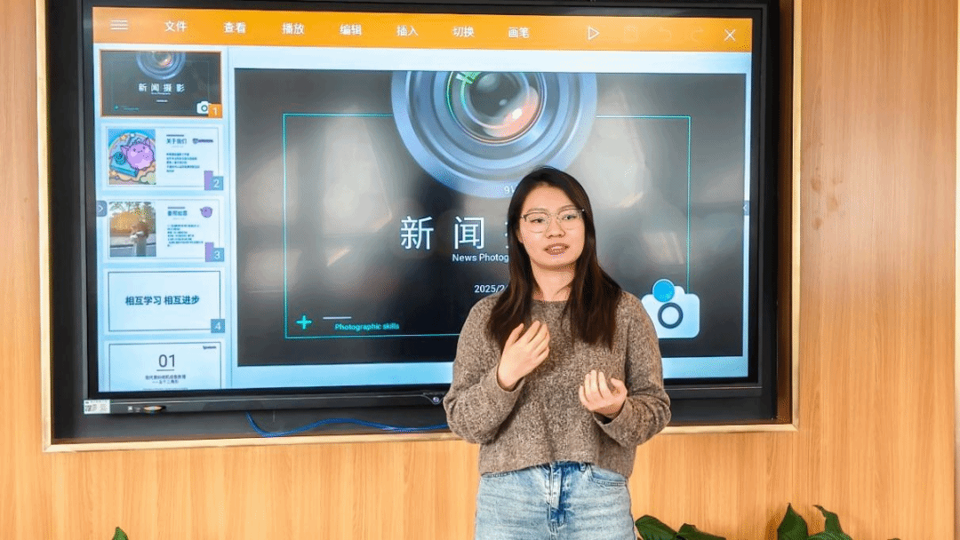 在理论讲解中,姜邢如意聚焦新闻摄影实操要点展开讲解。她结合案例,详细介绍了画面取景的五四三关系和画面构图的点线面关系,并对比分析室内外场景的拍摄差异,讲解了不同场景下角度调整和参数调节技巧。