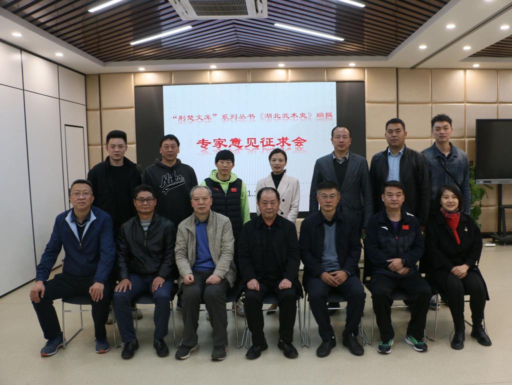 华大青年讯 (通讯员 陈钰莹 段云燕 李富朋)11月20日下午,“荆楚文库”系列丛书《湖北武术史》编撰专家意见征求会在南湖综合楼N9115报告厅举行。与会专家有湖北大学体育学院原院长蔡仲林、华中师范大学出版社原社长范军、历史文化学院院长吴琦、湖北体育局武术与冬季运动中心原副主任赵勇、体育学院武水健教研室主任王维。与会领导有体育学院院长王斌、社科处副处长刘中兴、湖北科学技术出版社副社长唐洁、体育学院副院长黄爱峰、副院长徐成立。参会武术教师有董辉、杜宾。此次会议由体育学院副教授周祖宝、副教授曾天雪、湖北科学技术出版社编辑徐竹、讲师谭晶组织。