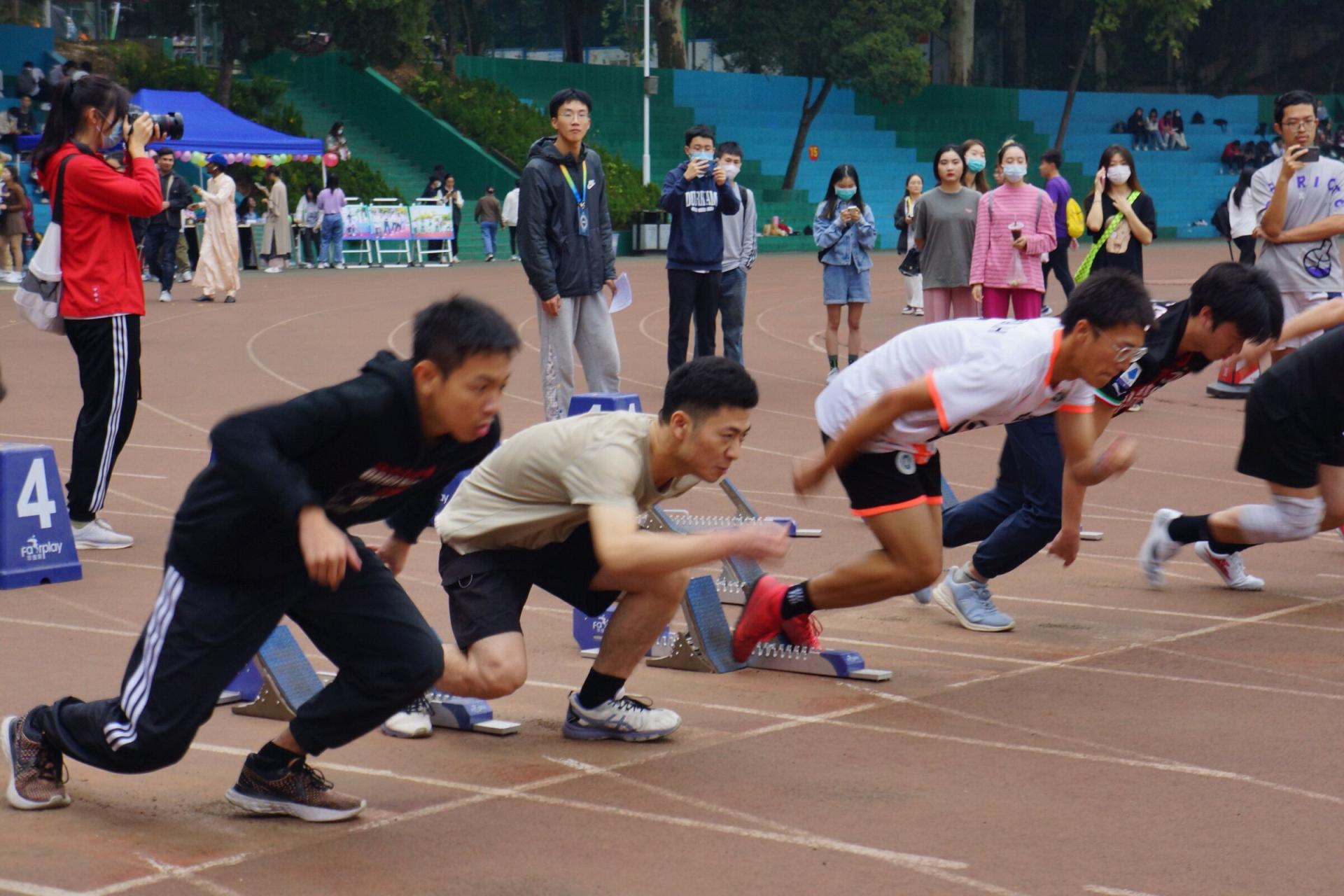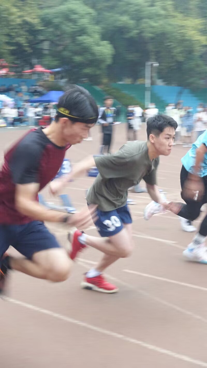 临近比赛,操场上万人空巷,跑道两边挤满了围观加油的同学,欢呼声与加油声不绝于耳。法学院健儿积极热身,舒展身体,在起点蹲下、弓身、准备,坚定的眼神仿佛穿越百米赛道,已然望见终点,显示出必胜的信心。裁判员高高举起发令枪,高声喊道:“各就各位,预备——跑!”。随着一声枪响,原本静候在起点的运动员们如同炮弹一般弹飞而出,刹那之间已然越过半程,他们身形似电,疾如奔雷,速度不减地向终点进行着最后的冲锋,近了,更近了!时间在刹那间凝固,几秒钟也变得如此漫长。终点冲刺!跑道边欢呼声、赞叹声震耳欲聋,运动员们气喘吁吁,仍微笑着回应人们的掌声,潇洒地摆摆手,展示比赛后的豁达。生命的活力与精彩在此彰显,青春的的热血与风采在此张扬。