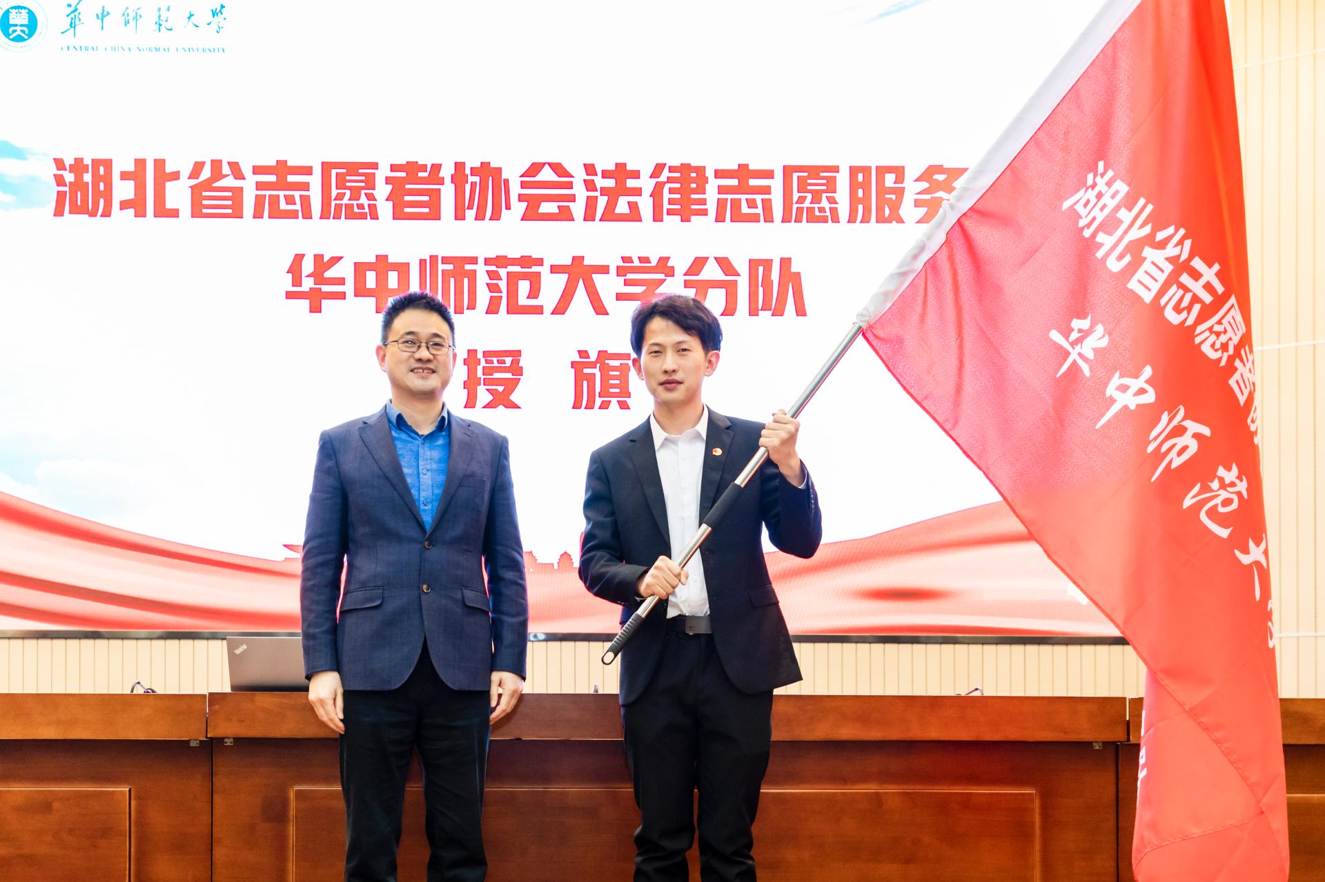 贺茂林代表省志愿者协会为省志愿者协会法律志愿服务队华中师范大学分队授旗。他表示,开展法律志愿服务理论研究、组织省级示范活动、为有需要的志愿者提供法律服务是省志愿者协会法律志愿服务队重要工作内容。此次华中师范大学法学院师生们的加入,不仅壮大了服务力量,还拓展了服务空间。他对华师青年提出三点期望,一是要厚植志愿情怀,奉献青春力量。要传承恽代英红色基因,学习身边志愿者典型先进事迹,深刻把握志愿精神的时代内涵和实践要求,让志愿服务成为一种生活方式。二是要联通内外资源,提升服务实效。要加强交流、提升服务能力,立足校园、深化服务内容,融入社会、助力基层治理。三是要深入观察思考,实践锻炼成长。要在实践中服务、在服务中思考、在思考中提升,努力成长为堪当民族复兴重任的新时代好青年。