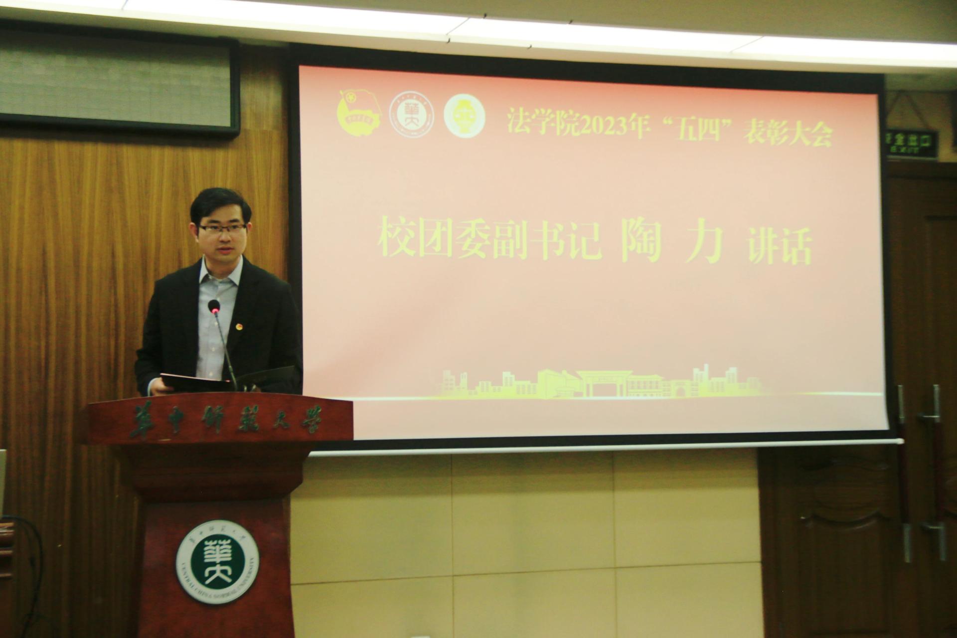 陶力代表校团委向法学院团委在2022年度取得的优秀成绩和丰硕成果表示祝贺,并向学院团委、团学干部和青年团员们提出希望。他表示,法学院广大青年团员要在学院党委的坚强领导下,志存高远,脚踏实地,在建设教师教育领先的世界一流大学征程上和实现社会主义现代化国家的宏伟蓝图中贡献青春力量。