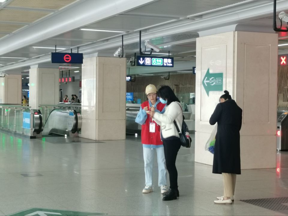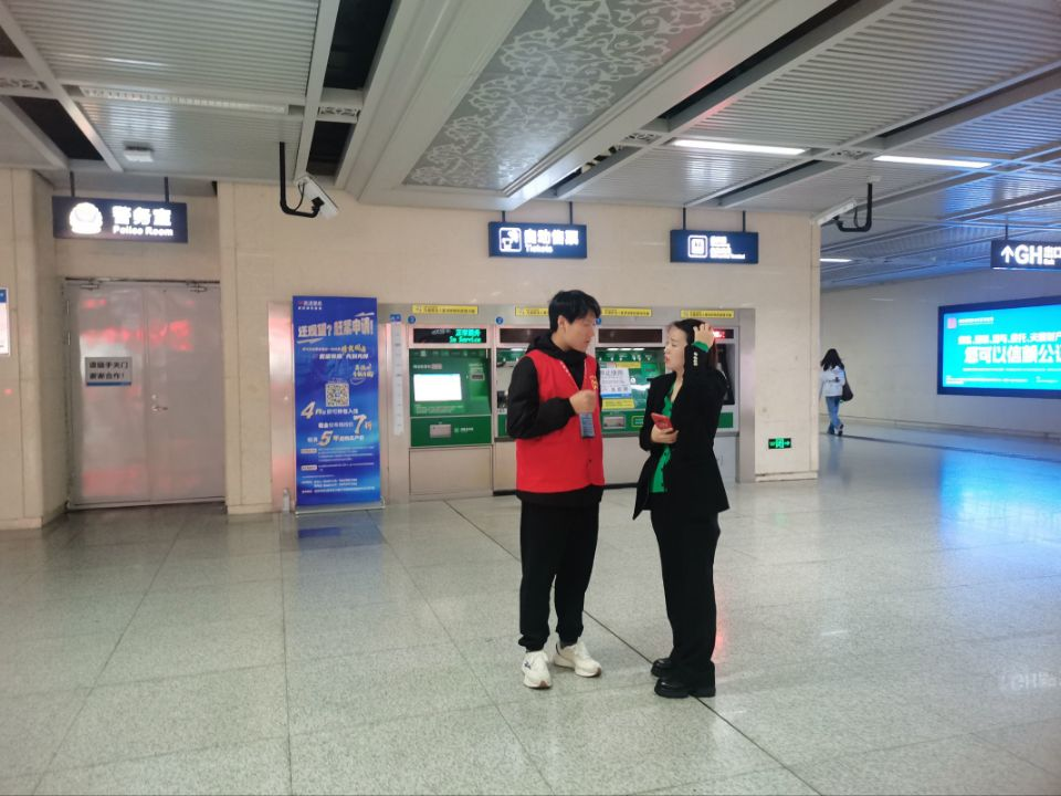 志愿者们分工明确,各司其职。在活动过程中,志愿者们积极维护地铁站内秩序,在客流量高峰期协助地铁站工作人员疏导乘客,提醒乘客注意安全。志愿者们也为一些需要帮助的人们提供方向指引,帮助乘客查询路线、解答换乘问题,让乘客享受到更加便捷、舒适的出行体验。同时,自助售票机旁也安排有志愿者帮助乘客顺利购票。面对乘客们的各种各样的问题,志愿者们热心回答,若遇到无法解决的问题,也会主动咨询工作人员帮助乘客解决困难。志愿者们用热情的笑容和细致的服务,让每一位乘客都能感受到温暖和关爱。