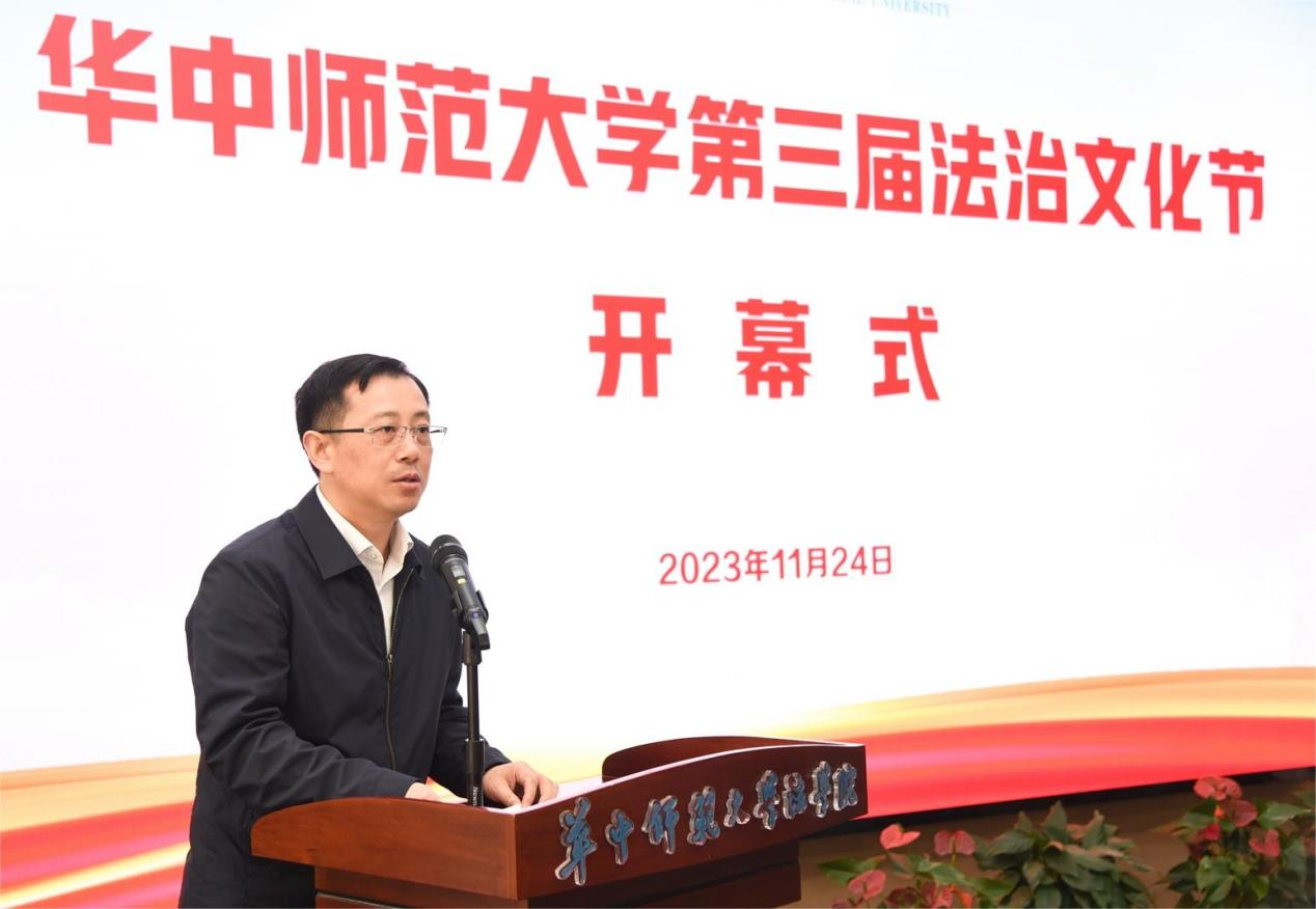 刘继文在开幕式上发表致辞。他对近年来华中师范大学在法治宣传教育中所取得的成绩给予肯定,并表示,开展法治宣传教育是我校贯彻落实党的二十大精神的具体举措,是深入学习贯彻习近平法治思想、提升依法治校水平的生动实践。在致辞中,他对学校的法治宣传教育提出三点希望:一是要提高站位,将法治宣传教育与法治中国建设深度融合;二是要系统谋划,将法治宣传教育与学校事业发展深度融合;三是要校地协同,将法治宣传教育与地方法治建设深度融合。刘继文希望广大师生以法治文化节为契机,积极参与法治文化节的活动,在实践中不断增强法治意识、坚定法治信仰,用实际行动为法治校园建设、法治中国建设贡献力量。