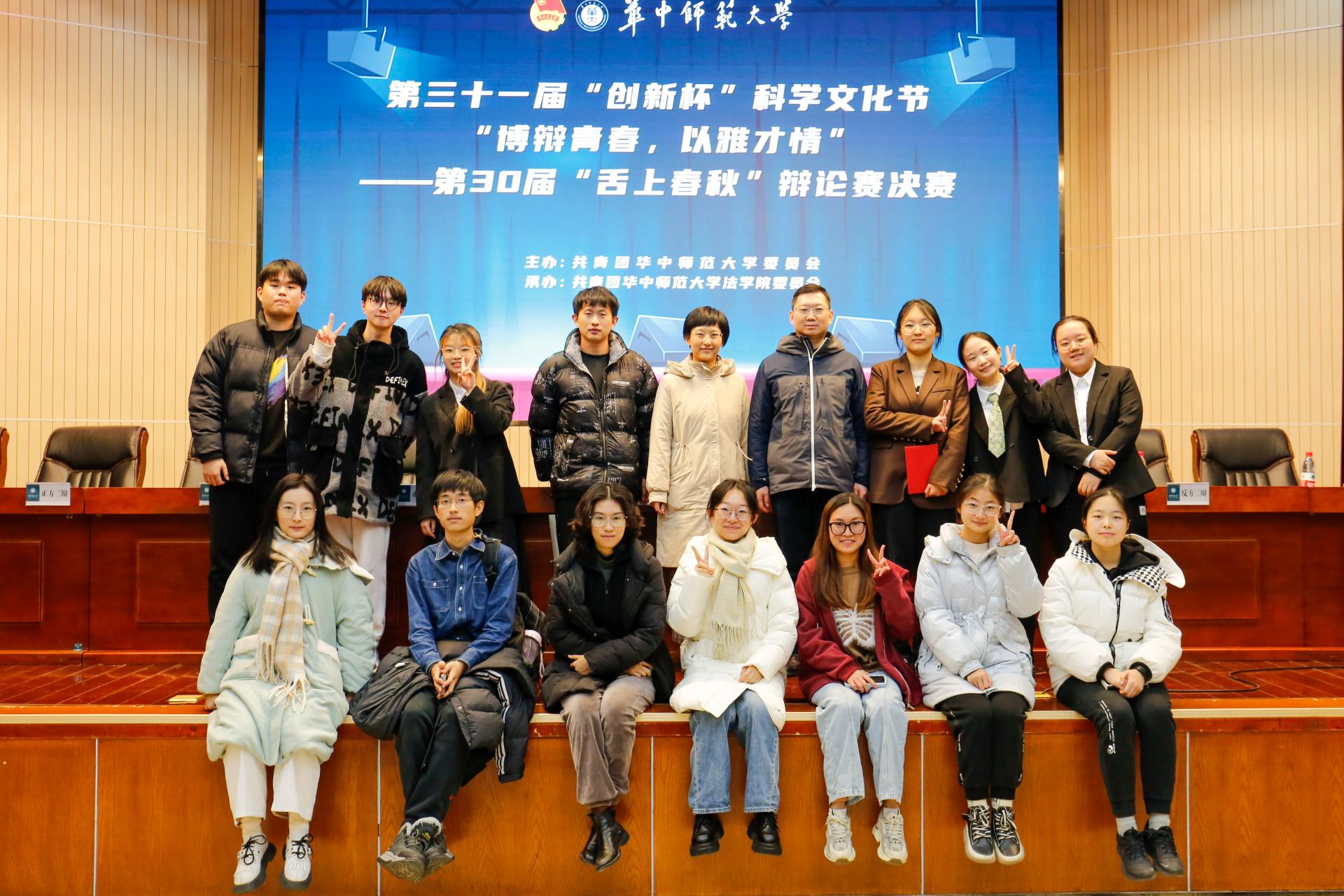 华大青年讯(通讯员 田怡冉 赵予溪)12月23日晚,华中师范大学第三十届“舌上春秋”辩论赛在科学会堂一楼报告厅拉开帷幕。本次比赛由共青团华中师范大学委员会主办,华中师范大学学生社团指导中心、共青团华中师范大学法学院委员会以及华中师范大学结芦演讲与辩论协会(学生)共同承办。校团委副书记薛惠、法学院党委副书记万枞、法学院团委书记张永基、文学院团委副书记黎书宏作为嘉宾出席本次活动。华中科技大学资深辩手魏莱、华中科技大学资深辩手李诗乐、武汉理工大学资深辩手陈晨通、华中师范大学资深辩手吴涛、华中师范大学资深辩手郑瑶瑶受邀担任此次决赛的评委。