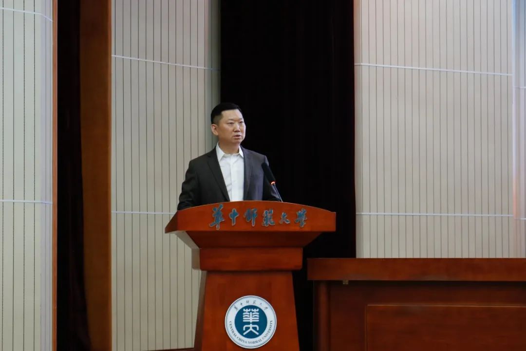 华大青年讯(通讯员 汪琬璐 蔡圆)11月15日,华中师范大学第四届法治文化节开幕式在科学会堂一楼报告厅顺利举行。学校办公室、党委宣传部、党委学生工作部、校团委、后勤保障部、保卫处、法学院等主办单位的领导和师生代表,协办单位广东广和(武汉)律师事务所主要领导,以及兄弟学院师生代表出席开幕式,中南财经政法大学“文澜学者”特聘教授秦小建应邀做开幕式主题报告。开幕式由法学院副院长肖登辉主持。