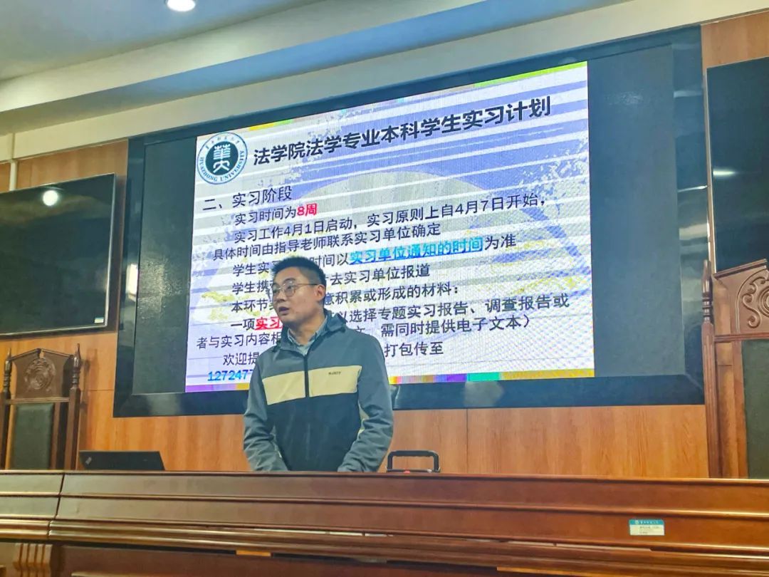 此次动员大会的召开,让同学们对实习有了更清晰的认识,有助于明确实习的目标和要求。随着实习工作的展开,在法学院相关领导、老师的关切与指导下,相信同学们定能以饱满的热情和严谨的态度投入实习,增强自身专业技能和实际操作能力,为未来的职业发展奠定坚实的基础。