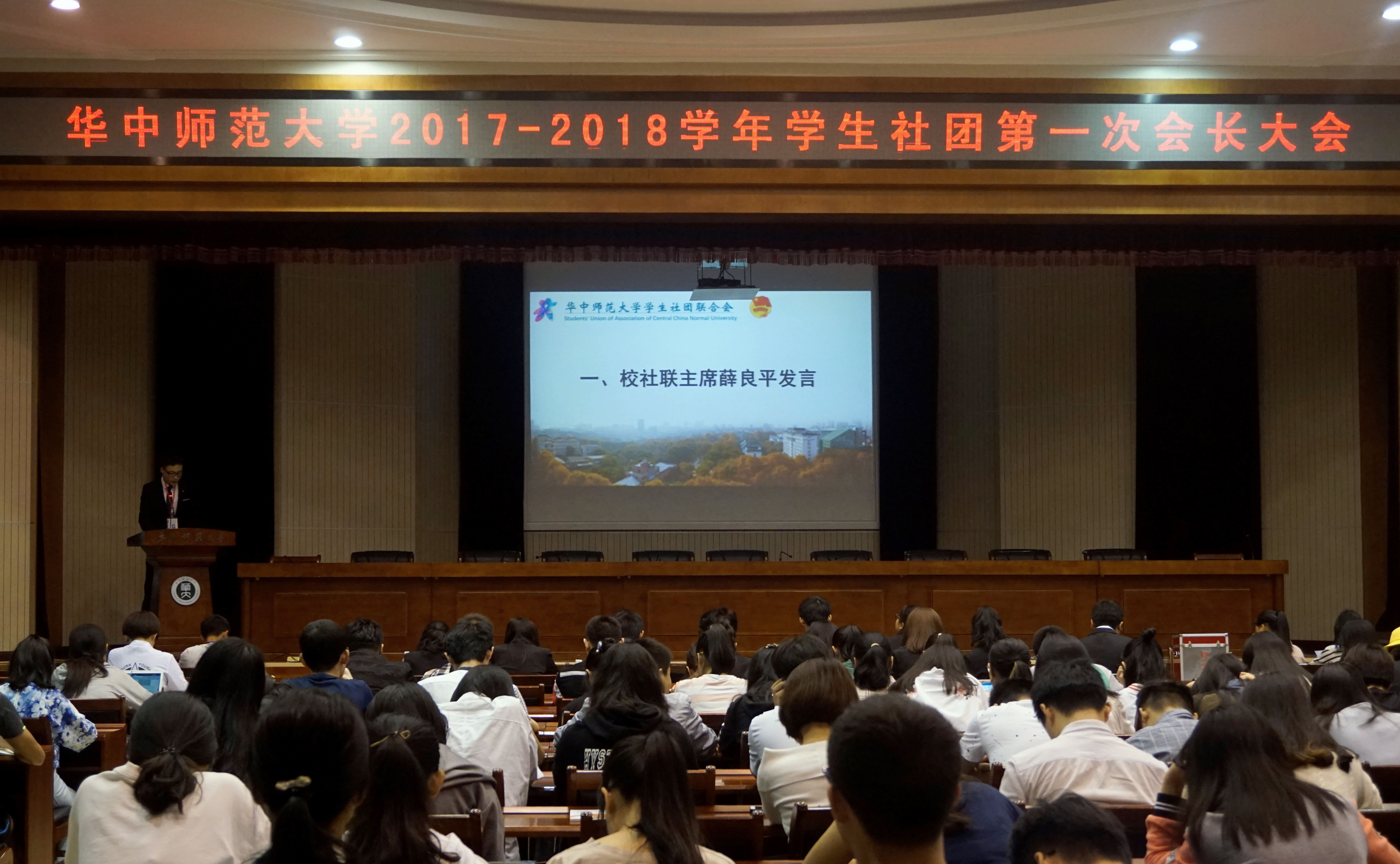 华大社联讯(见习记者 徐虎 见习摄影 闫然)10月10日中午12:10,华中师范大学学生社团联合会2017-2018学年第一学期第一次会长大会在科学会堂一楼顺利召开。本次会议由校社联副主席兼秘书长王晓静主持,参会人员包括校社联全委会成员及各学生社团负责人。