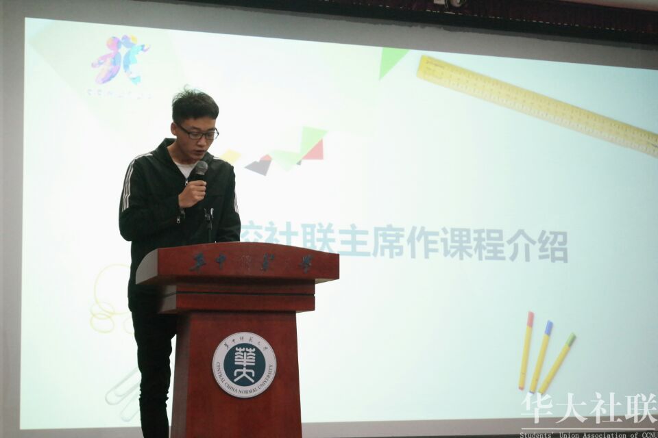 紧接着,校社联主席薛良平对百社讲坛进行了全方位的介绍。他指出百社讲坛是优秀社团面向全体在校同学的教学和推广。百社讲坛主讲人代表法学会会长熊予晴对该课程的要求做了相关说明后,百社讲坛第一期课程正式开始。