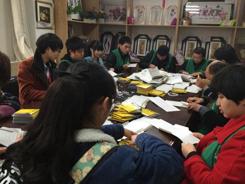 接着,为了帮助这些残障人士改善生活,同学们一起帮他们做简单的手工包装挣钱,整个下午都沉浸在欢声笑语中。临走时,残障朋友们都很不舍,同学们则表示会常来看望他们。